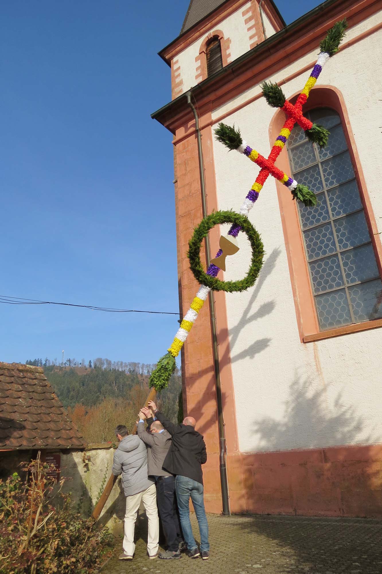 Am Palmsonntag erinnert die Kirche an den festlichen Einzug von Jesu in Jerusalem. Mit diesem Tag beginnt die Karwoche, die in das Osterfest mündet. »Jerusalem ist auch in unserer Stadt. Jesus will auch zu uns kommen«, interpretierte Pfarrer Gerner die Botschaft des Evangeliums. Gemeinsam mit den Kommunionkindern und ihren Gruppenbegleiterinnen zog er mit den Ministranten und Lektoren in die Kirche ein. Die Kinder stellten ihre Palmstöcke im Altarraum auf.