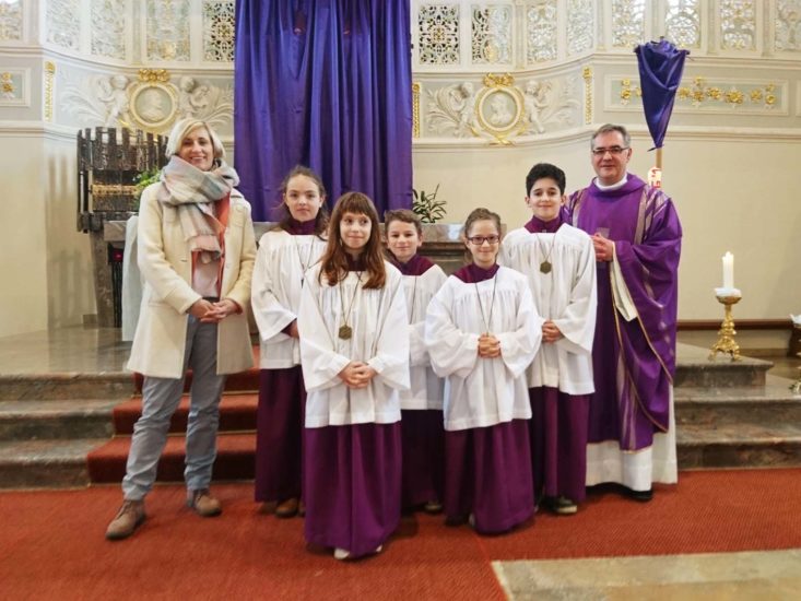 Am Sonntag, 18. März, wurden die neuen Ministranten in ihren Dienst eingeführt. Sie haben im Frühjahr ihre Erstkommunion gefeiert, danach von den älteren Ministranten ihre Ausbildung erhalten und freuen sich nun auf ihre ersten Einsätze am Altar. Manuela Zeferer wurde als neue Kommunionhelferin und Lektorin der Gemeinde vorgestellt.