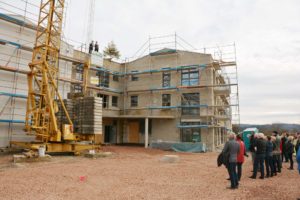 Der erfolgreiche Baufortschritt wurde mit einem zünftigen Richtfest gefeiert. Die beiden Zimmermänner Gebhard Zimmermann und Bernd Eble wünschten mit ihrem Richtspruch allen am Projekt Beteiligten für die Zukunft Glück und Erfolg.