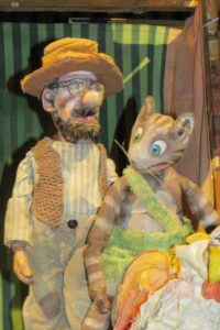 Wie alle kleinen Kinder in dieser Situation hat Findus Angst und Pettersson muss helfen. Am Ende schläft dieser im Zelt und Findus in Pettersson’s Bett im Hühnerhaus. Dann gilt es noch das Abenteuer mit der Angel und dem gefräßigen Hecht zu bestehen. So viel los auf der kleinen Puppenbühne, bei der die Akteure mal vor der Bühne mit sichtbarem Puppenspieler, mal hinter der Bühne oder in der Bühne selber spielen.