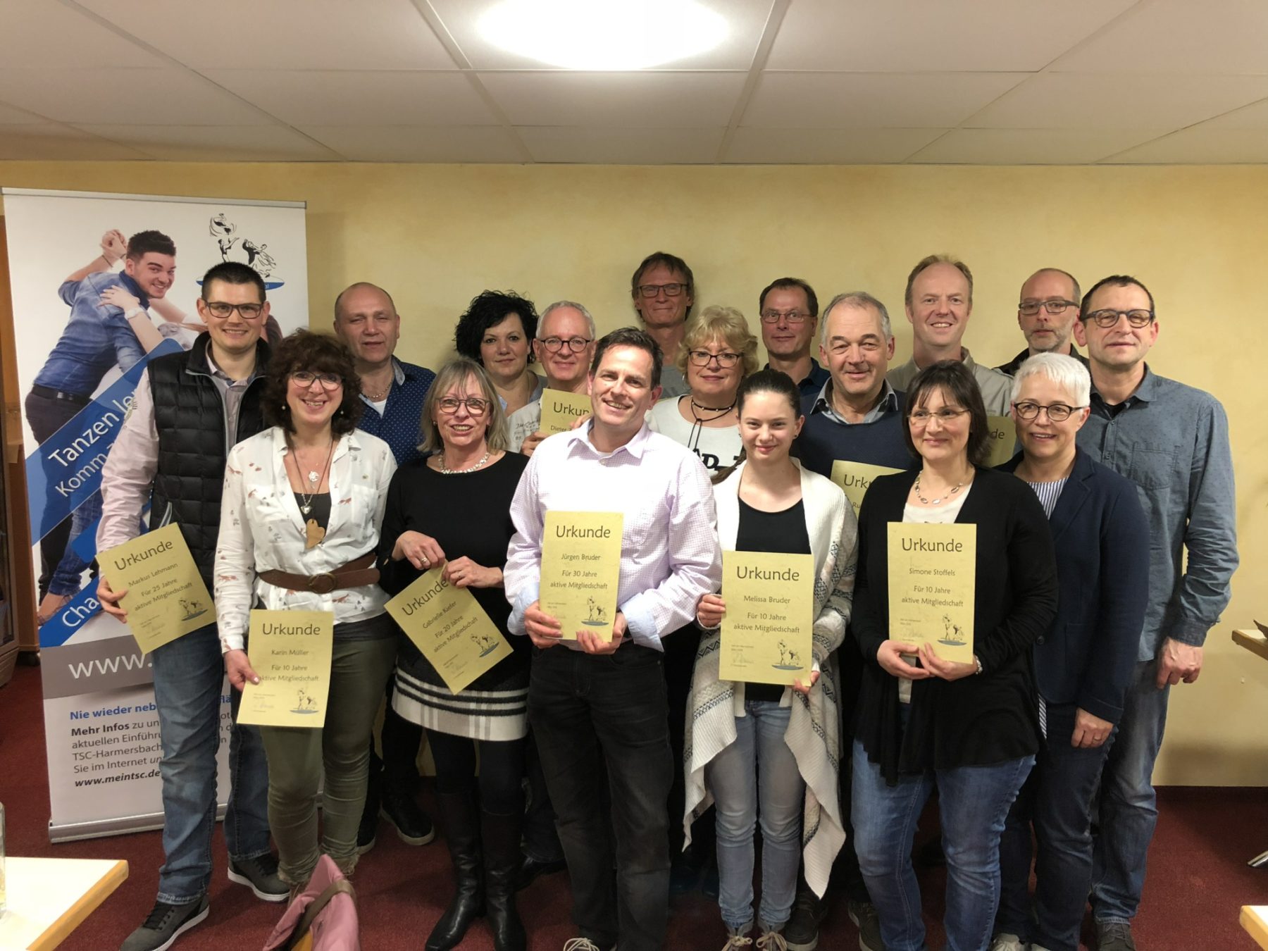 Auf alle Berichte konnte jedoch nicht verzichtet werden. So berichtete Augustin Müller in der Funktion als Kassenwart über die Zahlen des Jahres 2017, dass trotz des Aufwandes für Training und Plauschturnier dank zahlreicher Spenden die Kassenlage fast ausgeglichen umgesetzt wurde. Er zeigte sich zuversichtlich, dass es im kommenden Vereinsjahr, trotz anstehender Herausforderungen gelingen wird, wieder eine schwarze Null zu erreichen. Hierbei kommt dem Verein die stetige Angebotserweiterung und Vielfältigkeit an Tanzkursen und Workshops, aber auch an Gymnastik wie Move’n’Have-Fun sowie Zumba zugute. Die Kassenprüfer Michael Schätzle und Helmut Isenmann bestätigten die einwandfreie Finanzführung durch Augustin Müller und Egon Pohlmann. Besonderer Dank galt an dieser Stelle nochmals den treuen Sponsoren, welche den Verein unter dem Jahr immer wieder finanziell unterstützen und die als Dank auf der Homepage verlinkt sind.