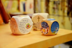 Gern verschenkt werden auch Handschmeichler und Gebetswürfel. Ein Handschmeichler ist ein kleiner und stetiger Begleiter in der Jackentasche. So hat das Kommunionkind bald immer einen Engel, ein Kreuz oder einen Fisch als Begleiter auf allen seinen Wegen.