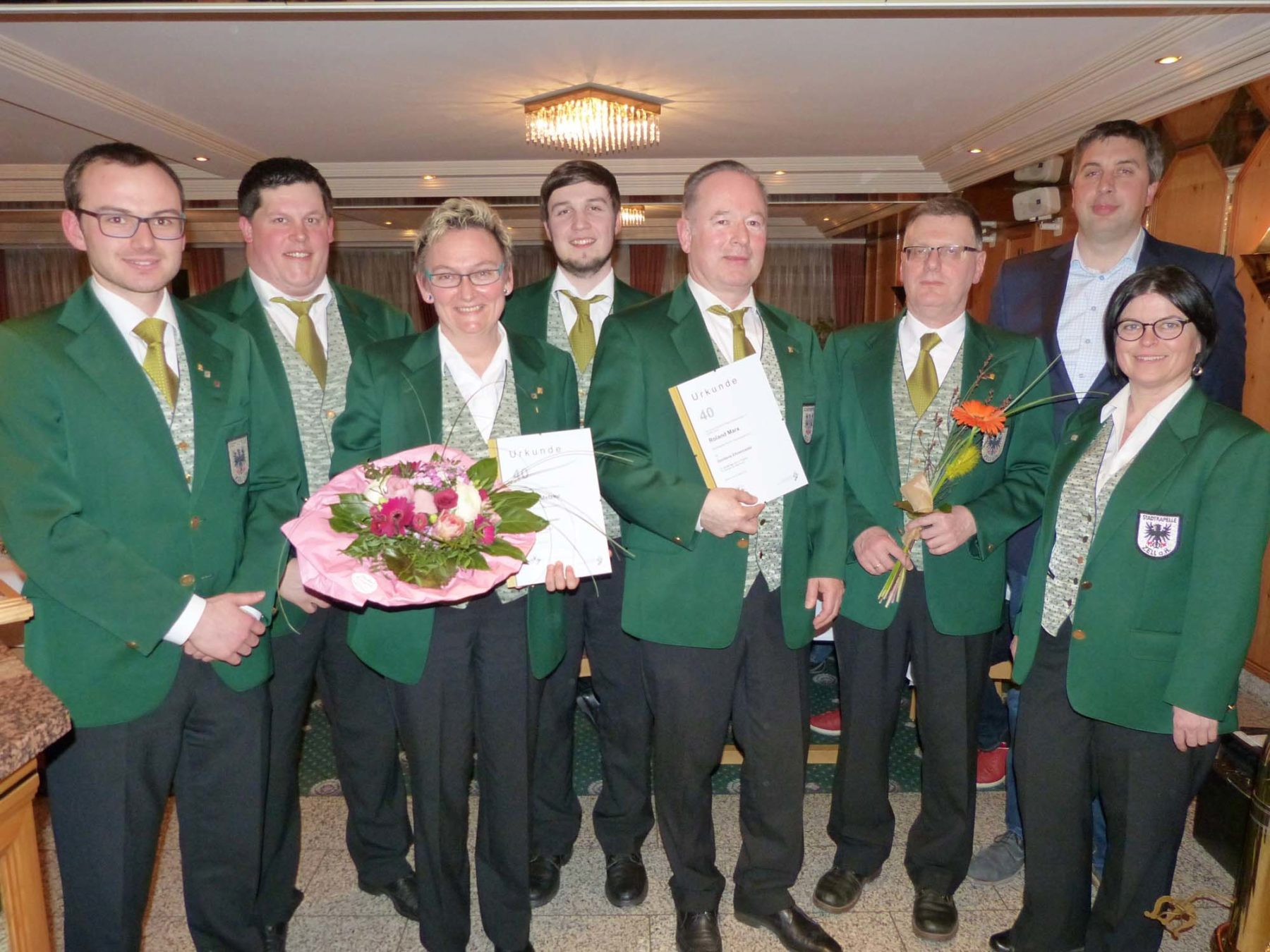 Urkunde und Ehrennadel wurde den beiden Jubilaren von Jürgen Isenmann überreicht, dem Vizepräsident