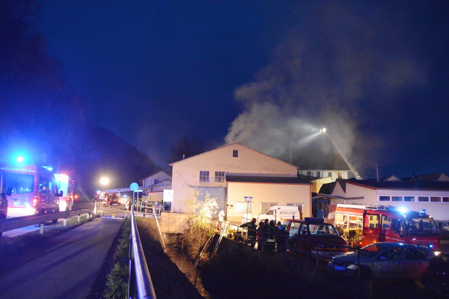 Foto: Hanspeter SchwendemannWie die Polizei informierte, befand sich der Brandherd im Bereich von Säure- und Laugenbäder, in denen Autofelgen behandelt werden. Offensichtlich handelte es sich bei der Brandursache um einen technischen Defekt. Zunächst kam es zu starker Rauchentwicklung und schließlich zu einem offenen Feuer in der Halle, das auf eine Zwischendecke und den Dachstuhl übergriff. Die Feuerwehr konnte ein weiteres Übergreifen auf benachbarte Gebäude verhindern. Giftige Dämpfe entstanden nicht. Die Landstraße 94 zwischen Biberach und Zell a. H. wurde komplett gesperrt. Der Verkehr wurde örtlich über Unterentersbach umgeleitet.
