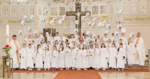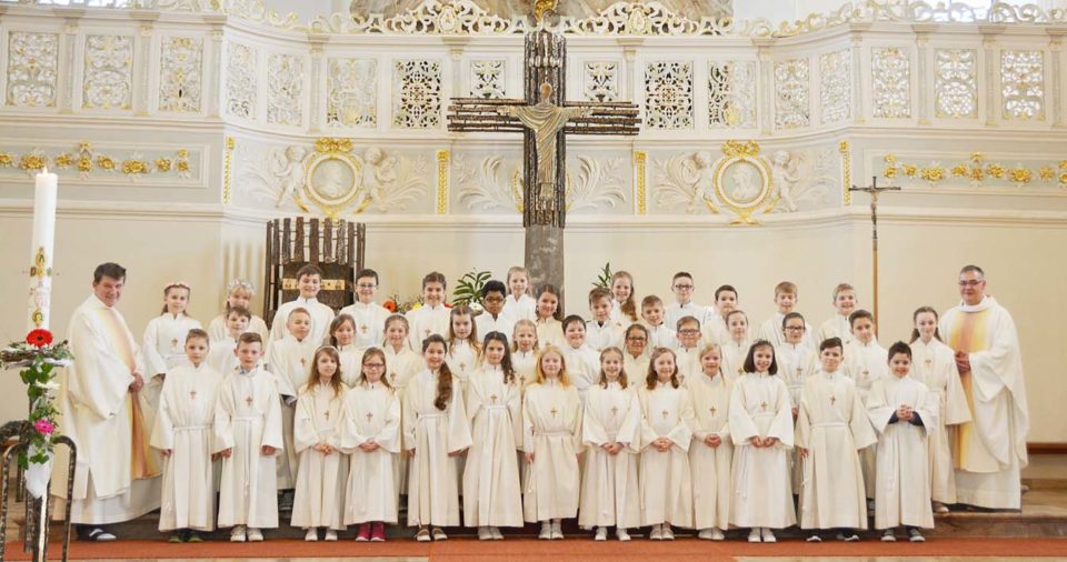 Das Wort Kommunion kommt vom lateinischen »Communio« und bedeutet Gemeinschaft. Feierlich wurden 43 Kinder am letzten Wochenende in der Pfarrkirche St. Symphorian in die Gemeinschaft der Gläubigen aufgenommen.