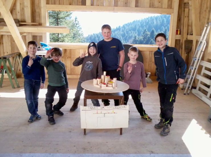 Sie wurden an dem Nachmittag begleitet von dem Erlebnis- und Bauernhofpädagogen Reinhard Lehmann. Zuerst ging es zu einer schön gelegenen Grillstelle mitten im Wald, wo die Kinder Holz und Reisig für das Lagerfeuer sammelten. Während das Feuer angezündet wurde, schnitzte jedes Kind individuell einen Stock für das Stockbrot und die Würstchen. Anschließend ging es zurück zum Bauernhof, wo Spiele für die Kinder vorbereitet waren, bei dem Teamgeist und ruhige Hände gefragt waren. Im Anschluss gab es noch ein paar kleine Experimente mit Feuer und Wasser. Da waren die Kinder mit Freude und Spannung dabei. Nach dem erlebnisreichen und spannenden Nachmittag ging es noch mal zurück zur Grillstelle, wo aus Mais Popcorn am Lagerfeuer gezaubert wurde.
