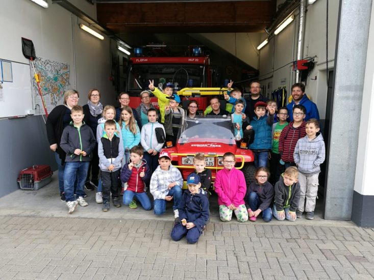Die Gruppe aus jungen und neugierigen Nachwuchsfeuerwehrmitgliedern im Alter von sechs bis neun Jahren hatten dort die seltene Möglichkeit, hinter die Kulissen der Europapark-Sicherheit zu schauen und die parkeigene Werkfeuerwehr sowie den dortigen Rettungsdienst kennenzulernen. Die Kinder hatten genügend Zeit, um den beiden hauptamtlichen Kräften, Kathrin vom Rettungsdienst und Holger von der Werkfeuerwehr, alle ihre Fragen zu stellen und um alle Einrichtungen und Gerätschaften genau zu erkunden. Sehr erstaunt waren die Kinder wie viele Einsätze und medizinische Notfälle an einem Tag und während der gesamten Parksaison von den Rettungskräften bearbeitet werden müssen.