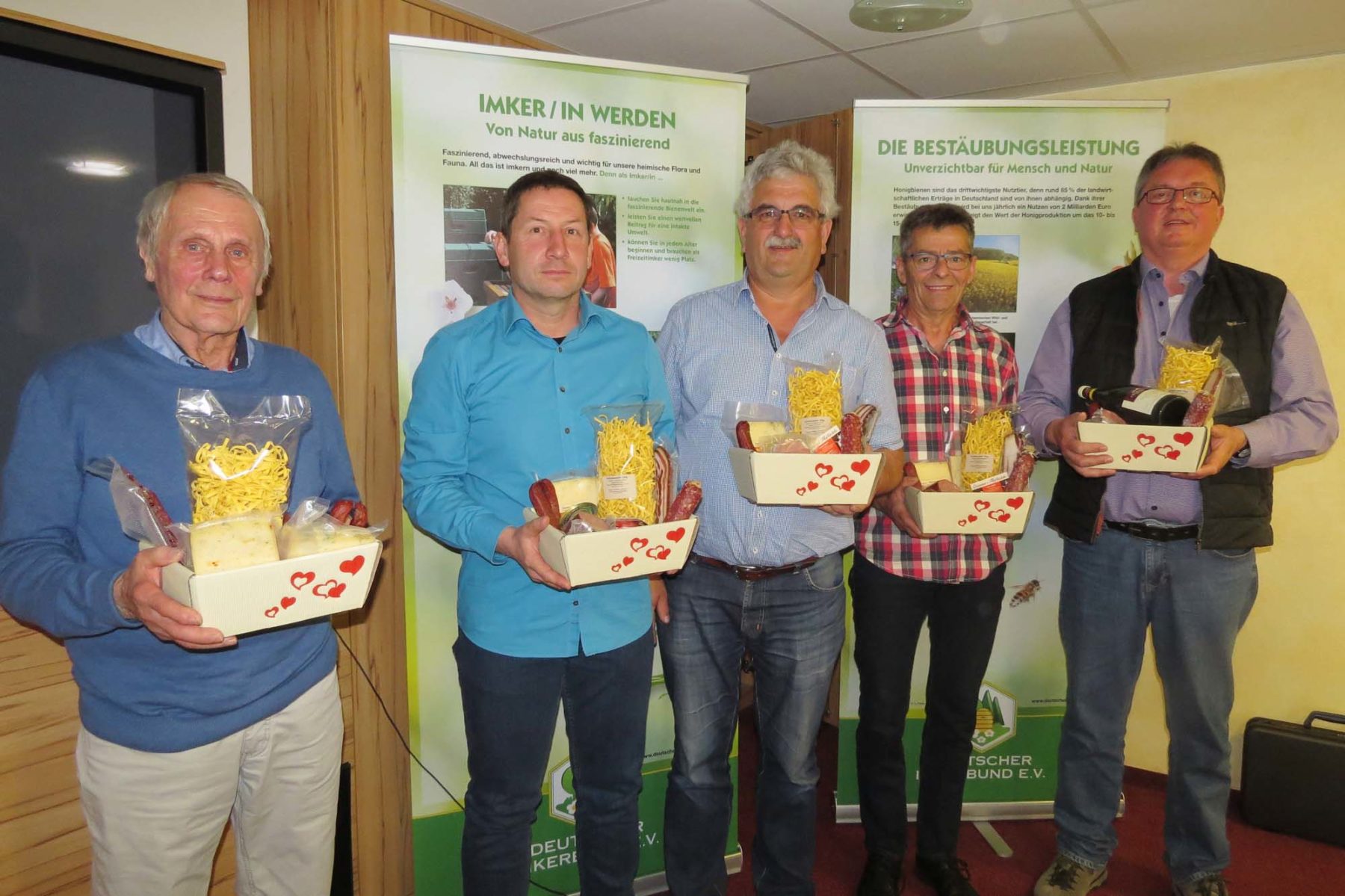 Ausführlich ging der Vorsitzende Urban Welte auf das Insekten- und Bienensterben ein. Der erste Grund ist der Parasit Voroa, der den Bienen massiv zusetzt. Ohne die Hilfe des Imkers können befallene Völker nicht überleben. Der zweite Grund ist der Rückgang des ständigen Nahrungsangebots. Der Einsatz von Pestiziden dezimiert den Bienenbestand; die Schaffung von Monokulturen und die Reduzierung kleinparzelliger Grünflächen machen den Bienen das Leben schwer. »Das Insektensterben ist in der Öffentlichkeit angekommen«, stellte Welte fest. Er werde oft angesprochen, dass man nur noch wenig Bienen summen hört. »Die Imkerei gewinnt an Ansehen, das können wir nutzen«, bemerkte Welte. Die Bevölkerung ist aufgefordert, pollen- und blütenreiche Pflanzen zu setzen. Balkonpflanzen können auf diese Merkmale hin ausgewählt werden. Auch die Landwirte können einen Beitrag leisten, indem sie Brachflächen mit Blühpflanzen einsäen und Ackerränder wild belassen.