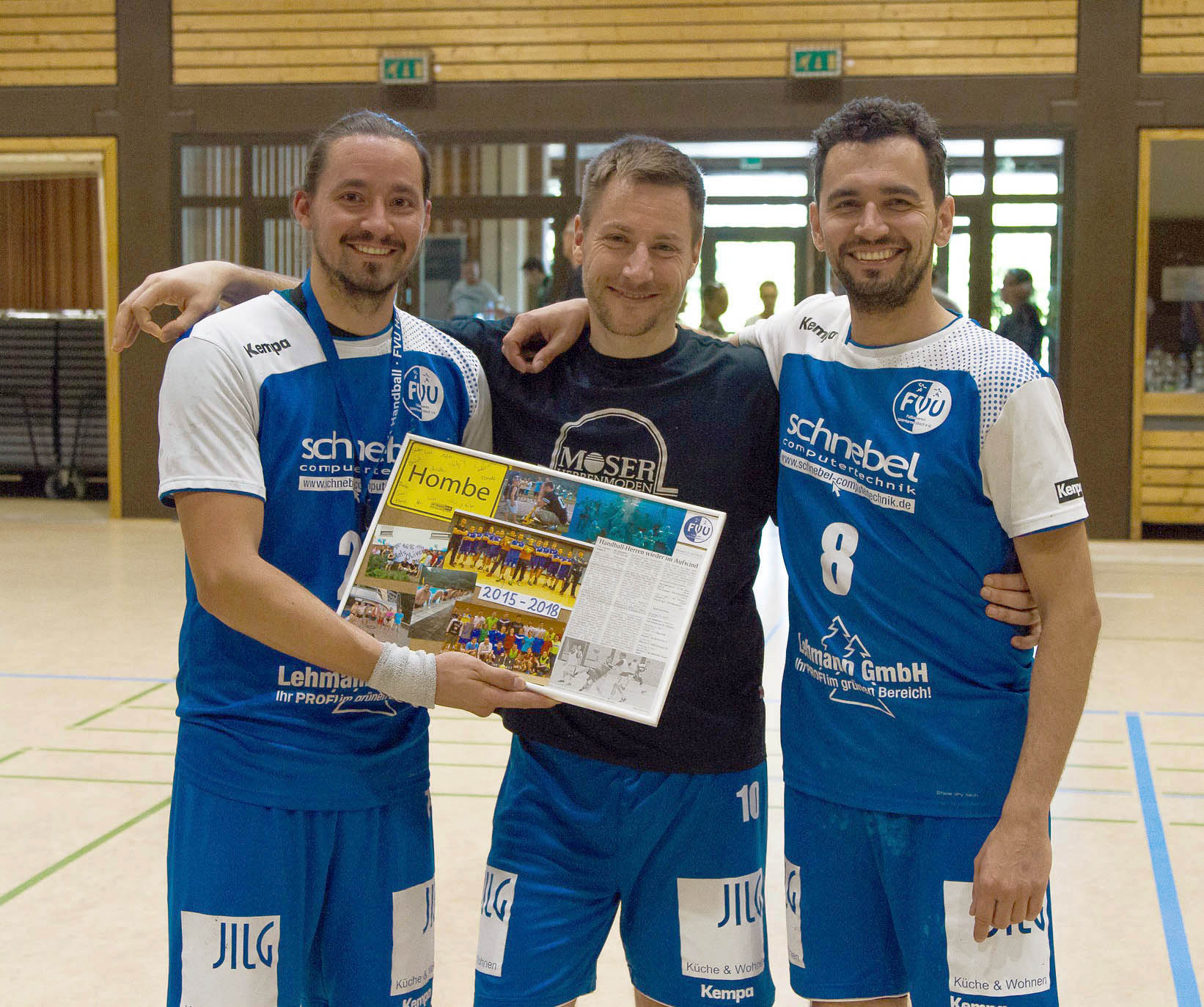Nach den vorneweg geplanten drei Jahren bei den FVU-Herren verlässt Trainer Thomas Walter den Hombe. Es war für beide Seiten eine neue Erfahrung, da es seine erste Trainerstation war. Die Mannschaft nahm ihn gut auf und seine Übungen waren bis in die letzten Wochen dieser drei Jahre immer abwechslungsreich und motivierend. Er sorgte oft für Spaß am Spiel und wenn es nur ein »Ihr-habt-euch-20-Minuten-Kicken-verdient« im Training nach einem erfolgreichen Match war. Unvergessen sind die einmaligen Vorbereitungstrainings beim Wasserball, beim Unterwasserrugby oder den Offenburg Miners oder die Freelatics oder »Pound Rockout«-Einheiten. Gerade in Zeiten als der Rückraum urlaubs- oder krankheitsbedingt schwächer besetzt war, sprang er auch als Spieler in die Bresche und konnte immer wieder Höhepunkte setzen. Der FVU mit allen Spielern wünscht Thomas für weitere Trainer- (oder auch Spieler-)stationen viel Erfolg und freut sich jederzeit, ihn bei einem Spiel auf den Rängen begrüßen zu dürfen. Als Dank erstellten die Spieler eine kleine Collage mit Artikeln, Leggings und Bildern aus der Zeit seit Juni 2015.