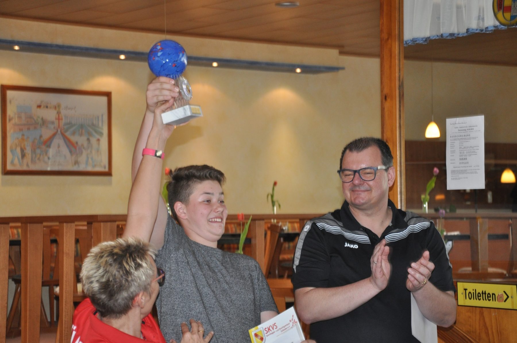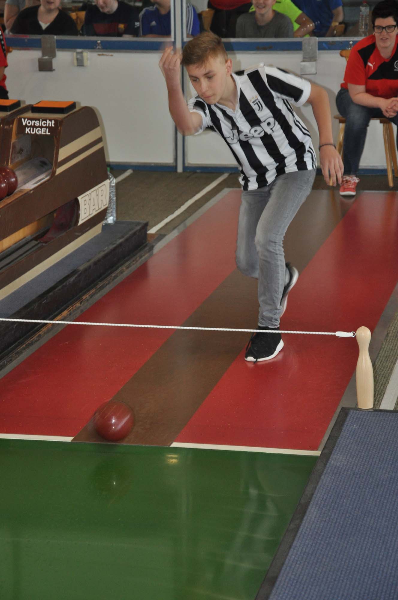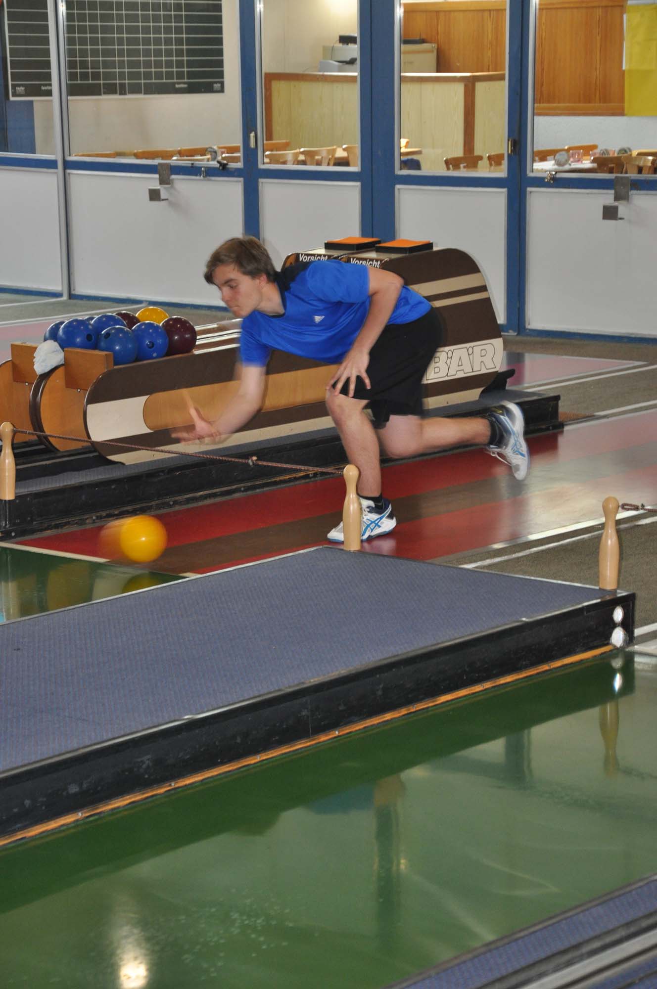 Im ersten Durchgang ging die Zeller Schule in beiden Disziplinen in Führung. Die R9a/b führte mit 431:384 Kegel bei den U18 mit fast 50 Kegel Vorsprung, wobei Robert Weisser mit 60 Kegel für Zell den Höchstwert erzielte. Bei der U14 ging es ganz knapp zu, Zell lag mit 321:317 Kegel lediglich vier Kegel vor Bonndorf. Hier markierte Deivid Peganov mit 42 Kegeln. Im zweiten Durchgang drehte sich jedoch dort das Blatt. Die Bonndorfer holten die vier Kegel auf und bauten ihren Vorsprung auf einmal kontinuierlich aus. Mit 676:586 Kegel gewann so das Bonndorfer Team vor dem Zeller. Die U18 jedoch gewannen auch den zweiten Durchgang und gewannen mit glatten 800 Kegeln vor Bonndorf mit 716 Kegel.
