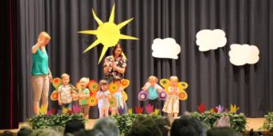 70 Kinder des Kindergartens Villa Regenbogen verzauberten ihre Familien im Kultur- und Vereinszentrum. Viele Eltern, Geschwister und Großeltern waren zur Aufführung »Beim Frühlingsfest auf der Wiese…« gekommen.