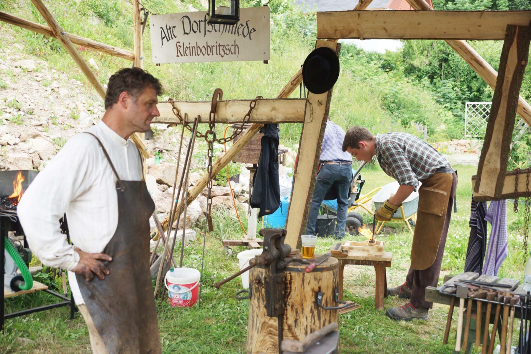 So standen unter anderem geführte Wanderungen, Streetsoccer- und Volleyballturniere ebenso auf dem Programm wie ein Auftritt des jugendlichen Gospelchors Schäßburg/Rumänien und ein festliches Konzert mit dem Frauensteiner Kantor Peter Kleinert an der Kreutzbach-Orgel und Lutz Hildebrand an der Trompete; beide haben in der Vergangenheit auch schon zum Tag der Deutschen Einheit am 3. Oktober in Zell gespielt. Am Samstag wurde mit viel Liebe zum Detail in Wasser- und Hospitalgasse altes Handwerk gezeigt und zahlreiche Motivpuppen saßen täuschend echt in den schmucken Gärten und auf Bänken vor den festlich bunt geschmückten Häusern. Über die gesamten Festtage gab es zudem sechs verschiedene kleine aber sehr feine historische Ausstellungen. So konnten die Besucher Werke Frauensteiner Künstler und Maler bewundern, eine Schmalspur-Modellbahn der ehemaligen Bahnstrecke Klingenberg-Colmnitz nach Frauenstein bestaunen oder über die lokalen Entwicklungen von Fernmelde-, Rundfunk- und Postwesen lernen. Außerdem luden ansprechend gestaltete Informationstafeln an vielen Frauensteiner Wohn- und Geschäftshäusern rund um den Marktplatz, die die aktuellen Bewohner in gemeinsamer Aktion mit der Stadt zusammengestellt hatten, zu einem Spaziergang ein. Frauensteiner Besucher werden auch zukünftig von diesen Tafeln profitieren können. Für viele war das malerisch am Fuße der Burg gelegene und eigens für das Jubiläum wieder belebte »Park-Café Fülle« das Ziel des Rundgangs. In entspannter Atmosphäre und bei leckerem hausgebackenem Kuchen wurden bestehende Kontakte nach Frauenstein vertieft und neue geknüpft.