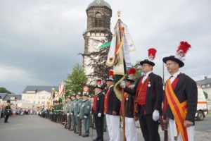 Zum Ausklang des Festwochenendes am Sonntagmorgen sorgten die Stadtkapelle gemeinsam mit dem Posaunenchor Frauenstein-Burkersdorf und dem Kirchenchor für eine stimmungsvolle musikalische Begleitung des ökumenischen Gottesdienstes in der vollbesetzten Frauensteiner Stadtkirche. Anschließend marschierte die Zeller Bürgerwehr ein letztes Mal auf, zu Ehren der beiden Pfarrer Gerald Kluge (röm.-kath.) und Daniel Wüst (ev.-luth.) folgte ein weiteres Salutschießen und man ging nahtlos über in die Eröffnung des 7. Bobritzschtaltreffens. Ein eindrucksvolles Feuerwerk am Sonntagabend schloss die ereignisreichen Festtage.