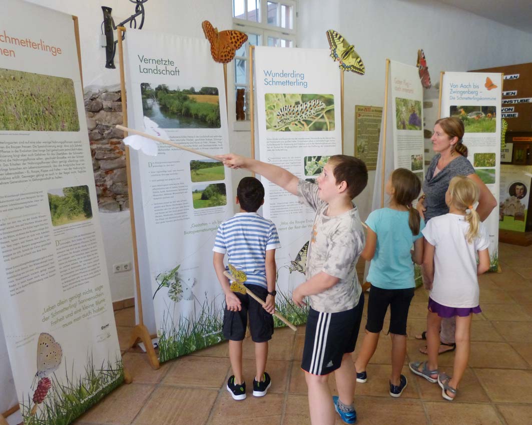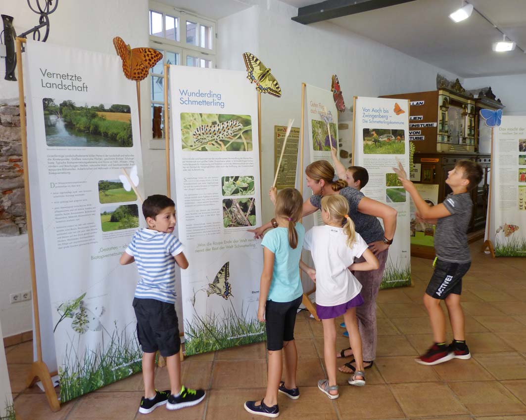 Keinesfalls dürfe man einzig die Landwirtschaft dafür verantwortlich machen, dass der Bestand der Insekten in den letzten 30 Jahren auf ein klägliches Viertel geschrumpft ist. Dies betont Angelika Kalmbach-Ruf mit allem Nachdruck, wenn sie Erwachsene oder Schulklassen im Storchenturmmuseum durch die Wanderausstellung »Schmetterlinge brauchen unseren Schutz« führt.