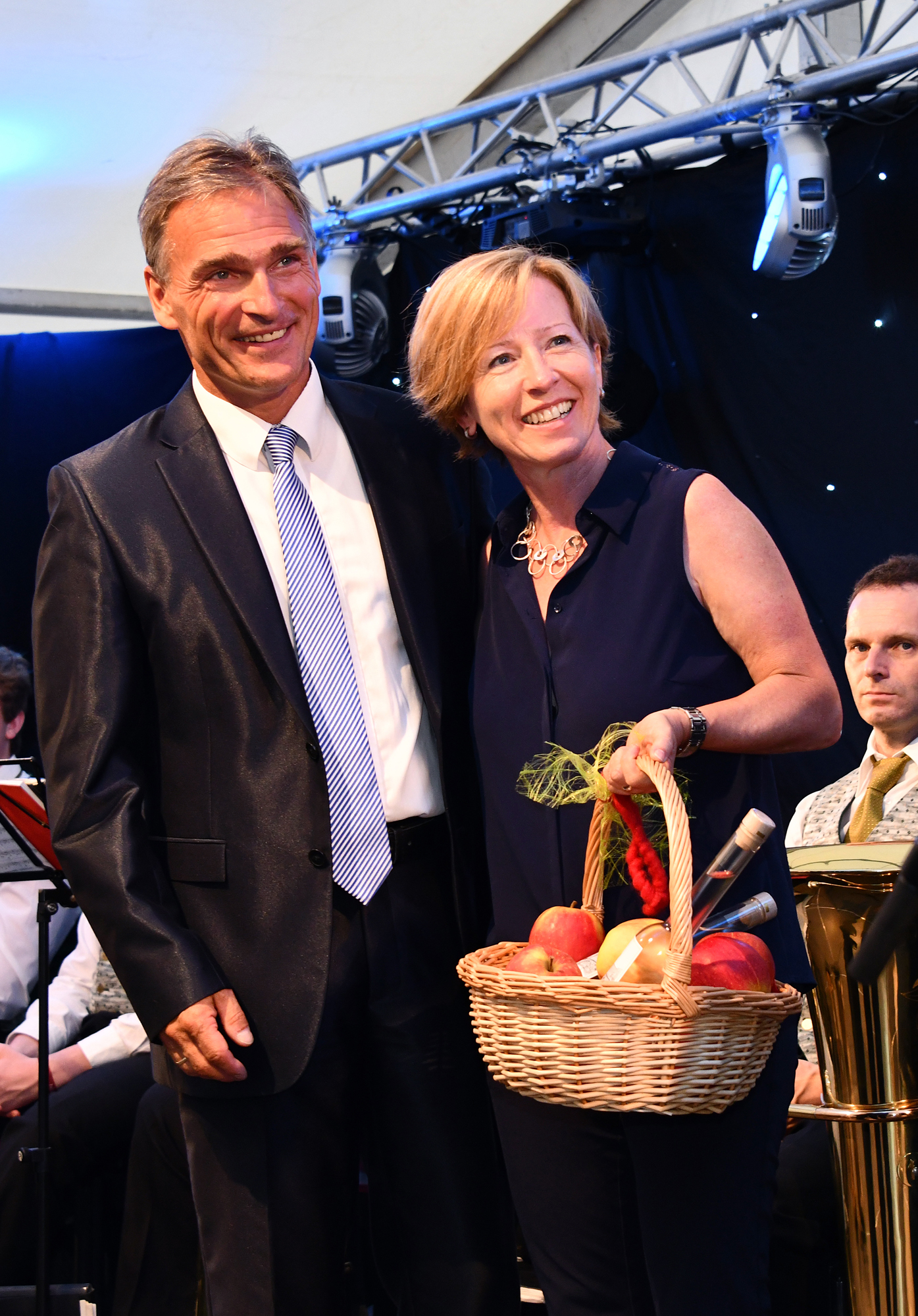 Auch wenn Frauensteins Bürgermeister Reiner Hentschel sagte, dass keine Geschenke notwendig seien, kam die Zeller Delegation doch nicht ohne. Zum einen hatte sie eine Menge »Manpower« mit dabei. Da die Partnergemeinde keine eigene Kapelle hat, war es für die Zeller Stadtkapelle Ehrensache, die musikalische Umrahmung einiger Programmpunkte zu übernehmen. Die Bürgerwehr sorgte bei ihren festlichen Aufmärschen hier und da für Tränen der Rührung. Außerdem überreichte Bürgermeister Pfundstein seinem Amtskollegen neben einigen anderen Geschenken einen Apfelbaum, der wohl am Kindergarten eingepflanzt werden soll. In seinem Grußwort erläuterte Pfundstein die tiefe Symbolik dieses Geschenks. Schon früh symbolisierte der Apfel das Leben. Im Mittelalter sei die Frucht in den Reichsapfel und damit in ein Herrschaftszeichen umgewandelt worden. Durch seine Form sollte er Vollkommenheit vermitteln. »Eine passendere Umschreibung für unsere Freundschaft lässt sich wohl kaum finden«, so Pfundstein.