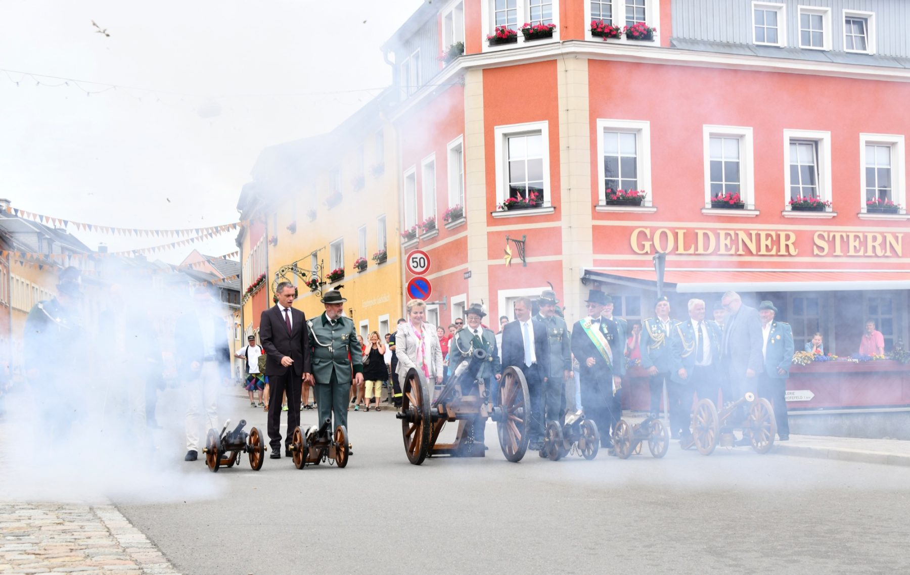 Salutschießen gehört nicht nur in Zell zu feierlichen Anlässen dazu. Es ist in Frauenstein ebenfalls eine liebe Tradition. Auch Bürgermeister Günter Pfundstein zündete eine Kanone.