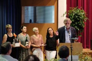 Bürgermeister Günter Pfundstein, als Stadtoberhaupt Vertreter des Schulträgers, betonte die Verdienste Teufels um den Erhalt der Werkrealschule. Mit festen Überzeugungen und Wertvorstellungen habe sich Teufel für den Erhalt der Werkrealschule eingesetzt – ein Schritt, der sich als richtig herausgestellt habe, was deutlich steigende Schülerzahlen zeigten. »Mit ihnen geht ein Stück der alten Lehrergeneration«, bedauerte Pfundstein. Teufel hätte mehr als Wissen vermittelt, er habe die Schüler auf das Leben vorbereitet. Pfundstein hatte zudem den Taschenrechner bemüht und konnte insgesamt mehr als 60 Jahre addieren, die Teufel in der Schule gewesen ist. Der Bürgermeister freute sich, dass der Bald-Pensionär in verschiedenen Gremien und Organisationen weiterhin aktiv bleiben will. Als Geschenk hatte er ein Weinpräsent und – für die viele neue Freizeit – eine Dauerkarte fürs Zeller Schwimmbad mitgebracht. »Bitte tauchen Sie nicht zu lange ab. Sie werden noch gebraucht«, schloss er seine Rede, nicht ohne auch die Grüße der anderen Talbürgermeister, des Gemeinderats und aller Mitarbeiterinnen und Mitarbeiter der Stadt Zell überbracht zu haben.