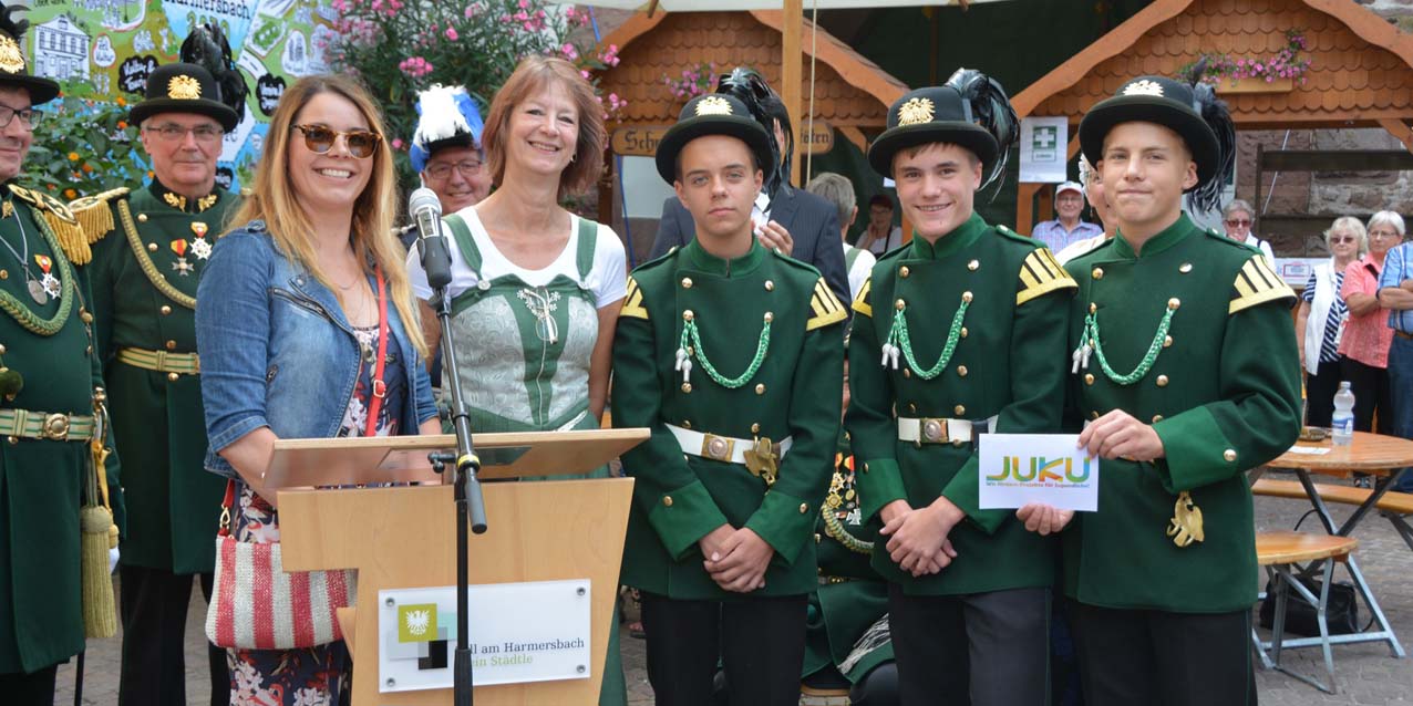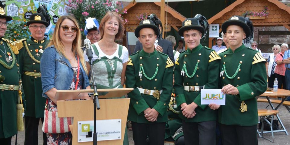 Beim Tag der Heimat übergaben die 2. Vorsitzende Astrid Benz und Pia Spiecker vom Verein für Jugend- und Kulturarbeit Zell eine Spende an die jugendlichen Mitglieder des Spielmannszugs. Damit wolle der JuKu die gute Nachwuchsarbeit fördern, die bei der Freiwilligen Bürgerwehr Zell geleistet wird, betonten die beiden Damen.