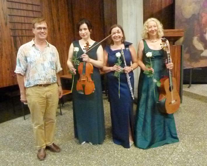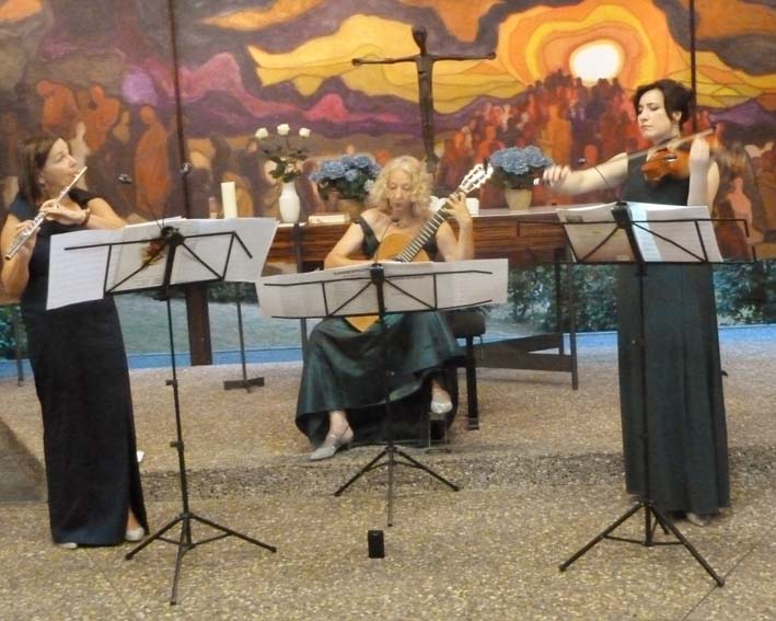 Klavier und Geige, auch Cello natürlich, zur Abwechslung Flöte oder Klarinette, von Streichquartetten ganz zu schweigen. Das gefällt und glänzt. So gut wie gar nicht verbreitet ist freilich die Kombination Flöte, Bratsche und Konzertgitarre. Zu hören war diese ungewöhnliche Formation am Mittwochabend in der evangelischen Kirche.