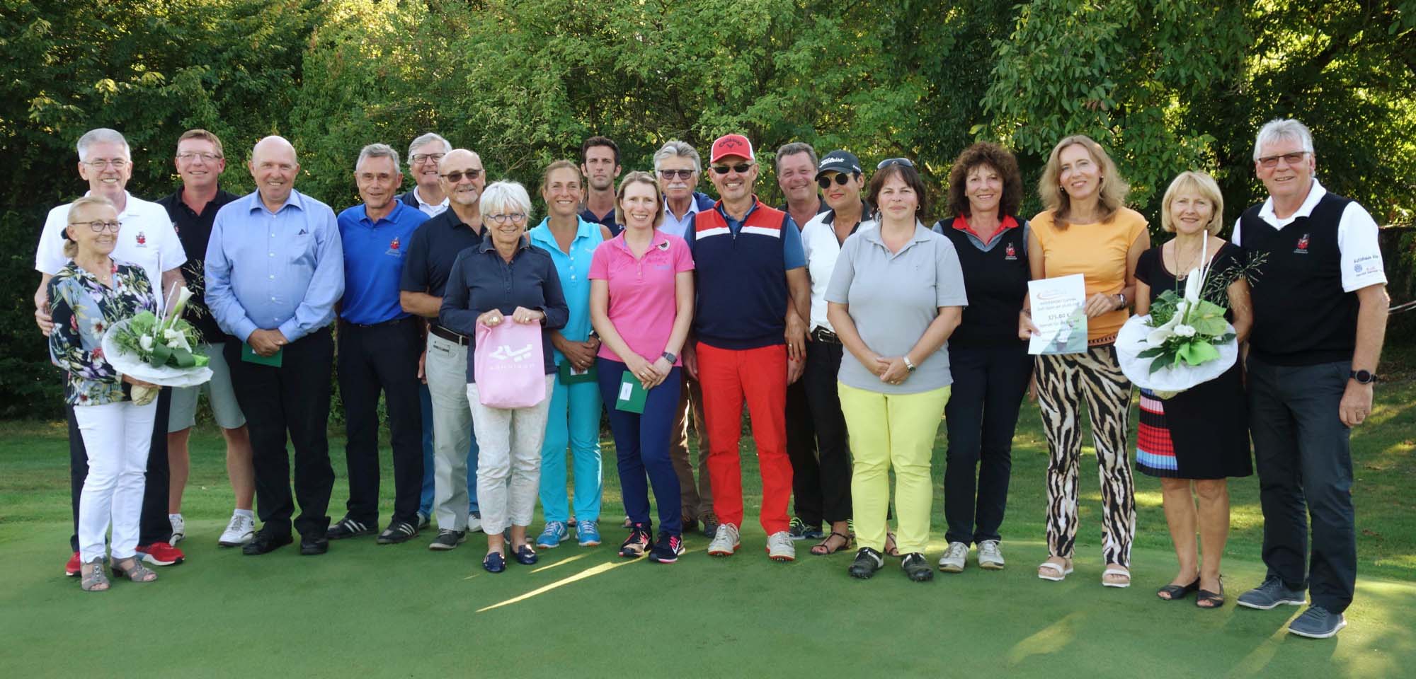 Es war das Turnier der Clubsekretärin Andrea Breig-Jehle. Gleich dreimal stand sie auf dem Siegerpodest: Bruttosiegerin bei den Damen mit 23 Punkten, 2. Platz in der Nettowertung mit 36 Punkten und mit 1,68 Metern gewann sie auch den Nearest-to-the-Pin. Sechsmal gab es eine Unterspielung beziehungsweise Verbesserung des Handicaps sowie auch zahlreiche Pufferergebnisse, was angesichts der hervorragenden Platz- und Witterungsverhältnisse so zu erwarten war. Den Bruttosieg von Mitveranstalter Hans-Joachim Domfeld gab der Gewinner an den Zweitplatzierten Wolfgang Bauert weiter. Wertvolle Siegerpreise und eine Tombola mit außergewöhnlichen Gewinnen, gespendet von den Turnierveranstaltern, machen dieses Turnier alljährlich zu einem der Höhepunkte im Clubkalender. Präsident Olaf Pohl bedankte sich hierfür ganz herzlich und freut sich jetzt schon für die weitere Turnierunterstützung. Alle Turnierteilnehmer spenden vom Startgeld 5 Euro für die Jugendarbeit im Club.