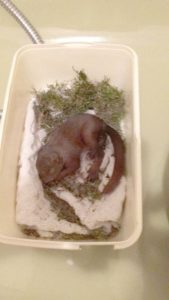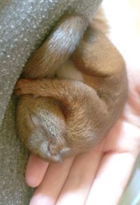 Nicole Bischler staunte nicht schlecht, als sie vor einigen Tagen ein kleines Eichhörnchen im Wald gefunden hat. Das Tierchen hatte sich in einer Vanille-Eisdose verkrochen und wirkte alles andere als fit. Also hat sie den kleinen Zwerg kurzerhand mit nach Hause genommen und versorgt. »Ich denke er wäre bei der Hitze verdurstet«, sagt sie und schickt uns dieses Foto von Eichhörnchen »Manfred«, das die Nacht überlebt hat.