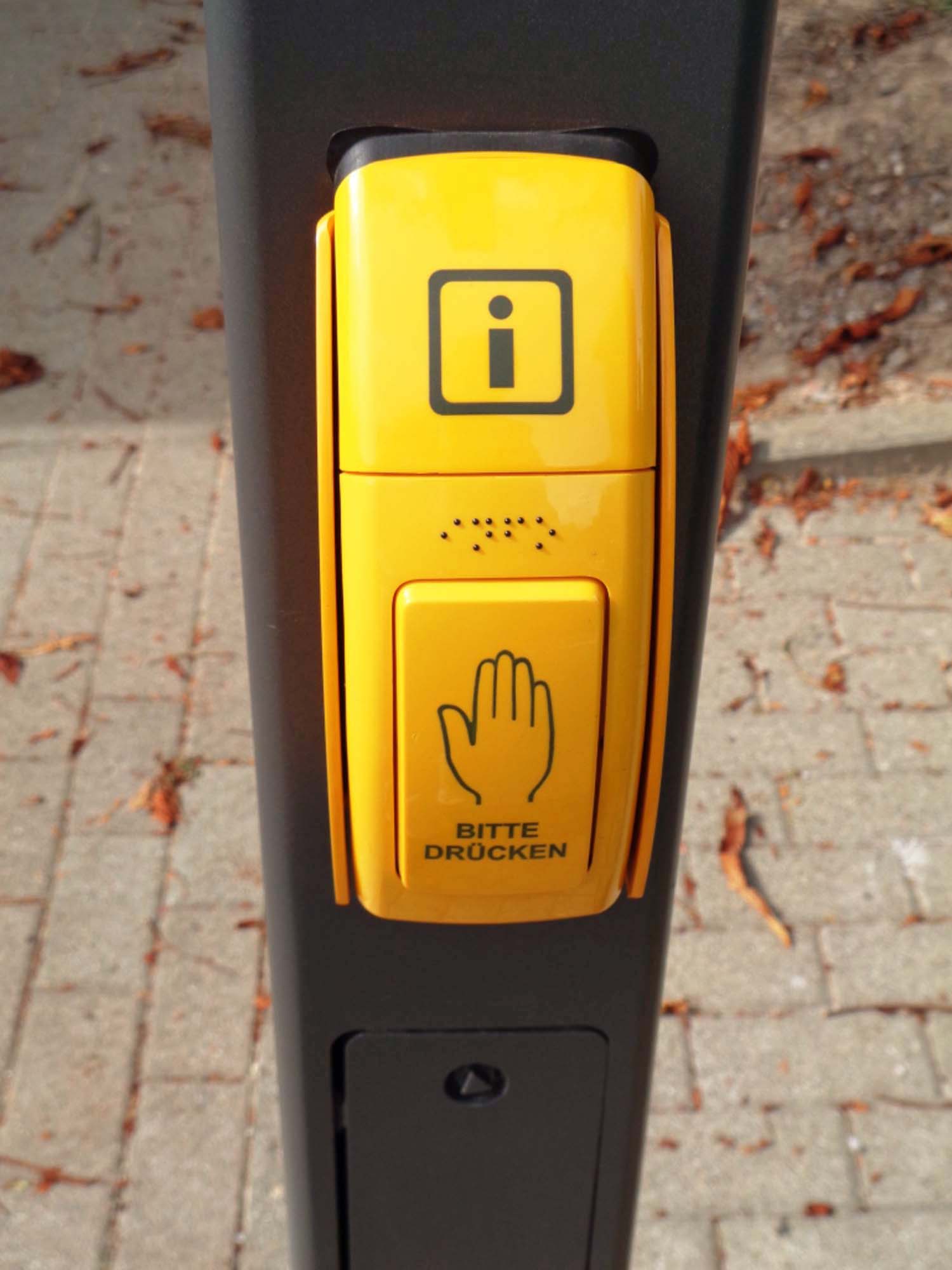 Bei den doppelseitigen Anzeigern, die auf starken Masten befestigt sind, handelt es sich um hochauflösende TFT-Bildschirme, deren digitale Oberfläche sich frei gestalten lässt. Für Blinde oder sehbehinderte Fahrgäste wurden an den Masten aller Anzeiger gelbe Vorlesetaster angebracht, über welche der Bildschirminhalt abgerufen, also angesagt, werden kann. Diese sind bei der Harmersbachtalbahn Zurzeit noch in der Erprobung.