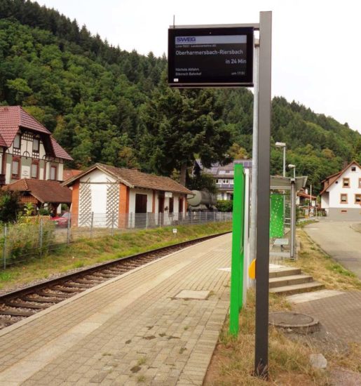 Sämtliche Strecken der SWEG werden wohl künftig mit diesem innovativen System ausgerüstet. Den Anfang machte die SWEG in Zusammenarbeit mit der Stadt Lahr im Frühjahr für die Busverbindungen zur Landesgartenschau. Und nun installierte die SWEG das System an allen Haltestellen und Bahnhöfen, also auf der ganzen Strecke, der Harmersbachtalbahn.
