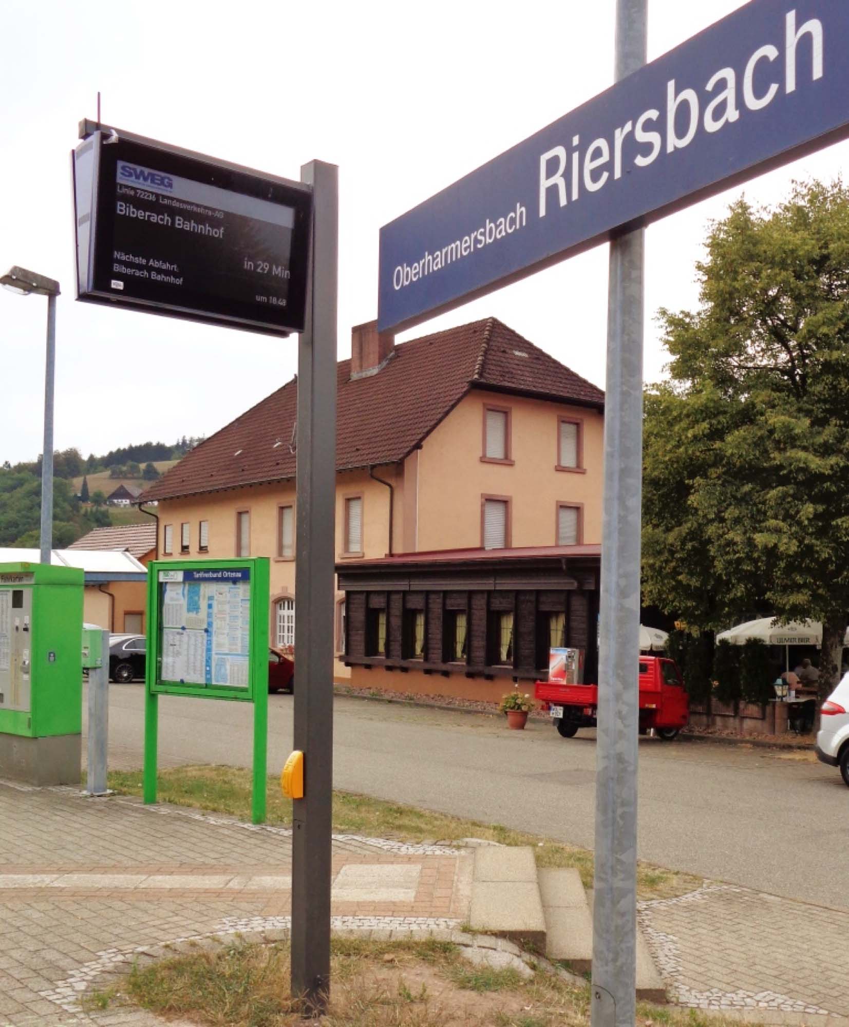 Wer in Biberach aussteigt, um ins Zeller Bähnle, sprich die Harmersbachtalbahn, umzusteigen, kann seit kurzem ein weit verbessertes Informationssystem über die aktuell nächsten Zug- und Busverbindungen nutzen.