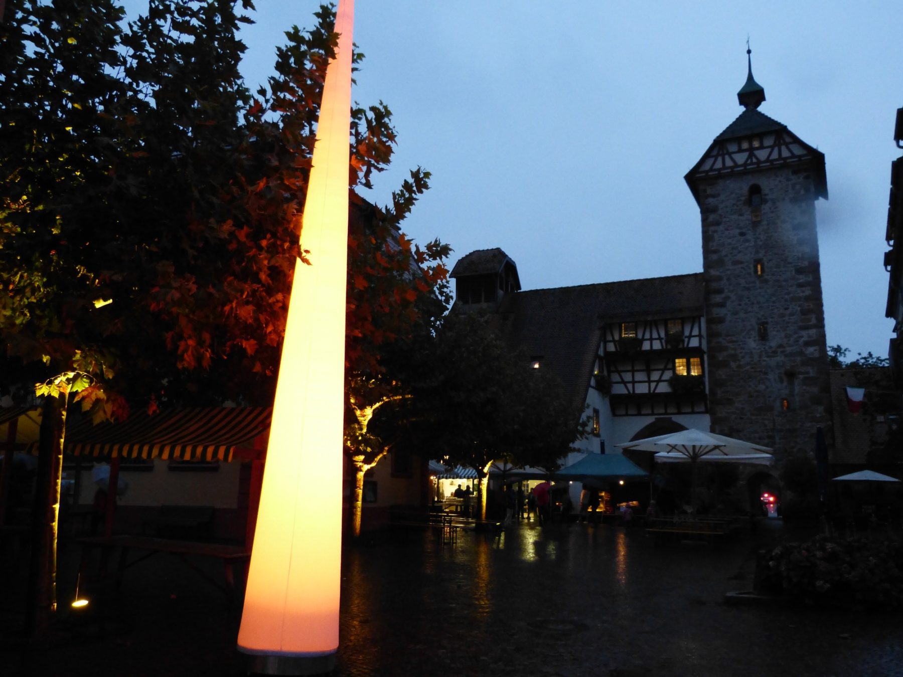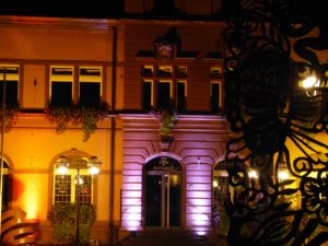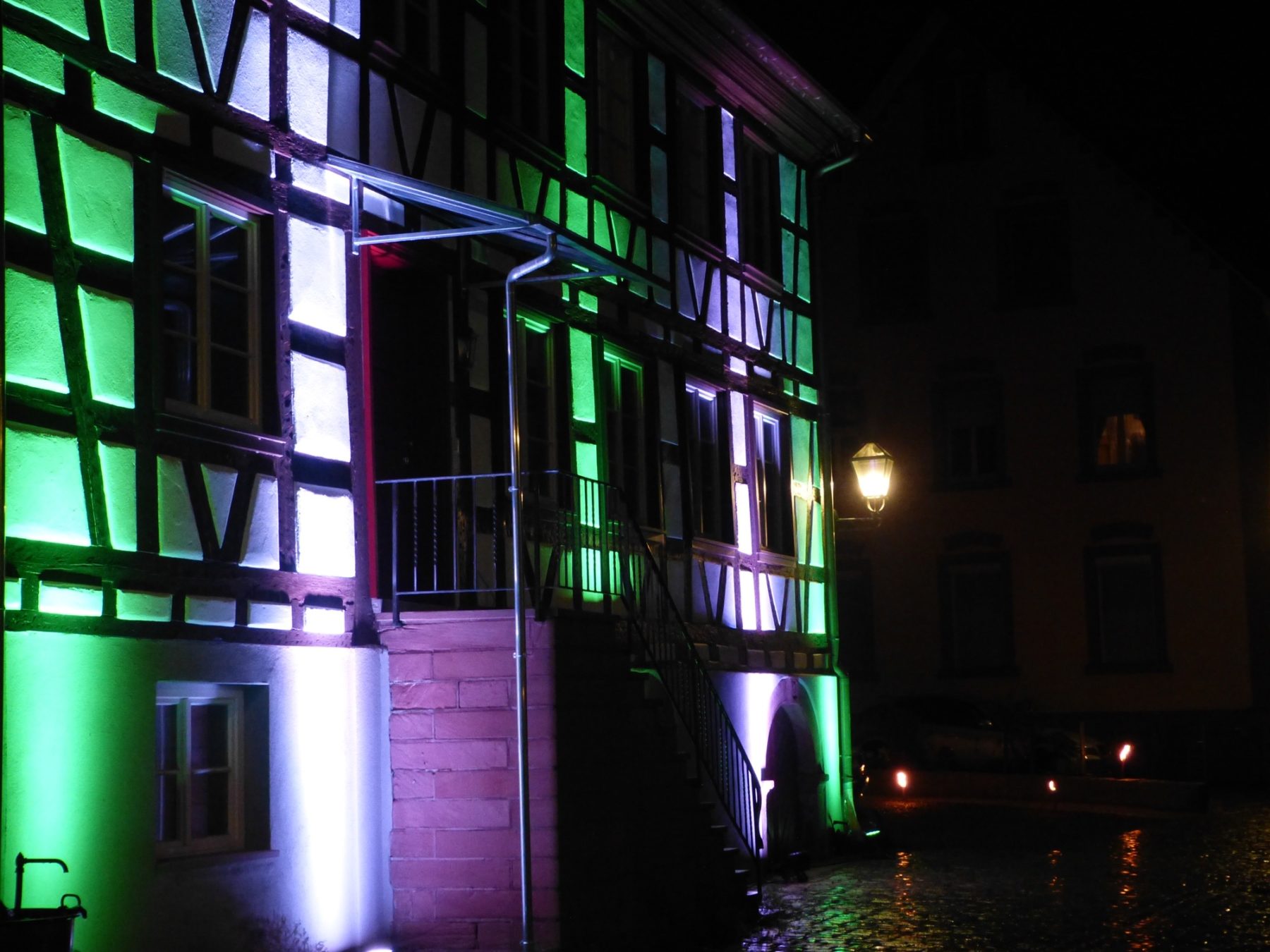 Wer aber trotz der widrigen Wetterumstände in der Museumsnacht unterwegs war – möglicherweise auch bei einer Stadt- oder Kunstwegeführung –, der kam aus dem Staunen nicht heraus. »So eine schöne Beleuchtung«, war immer wieder von Passanten zu hören: angesichts der stimmungsvollen Farbakzente, mit denen vor allem einzelne Fassaden aus der Zeit von Mitteltalter oder Jugendstil in Szene gesetzt wurden.