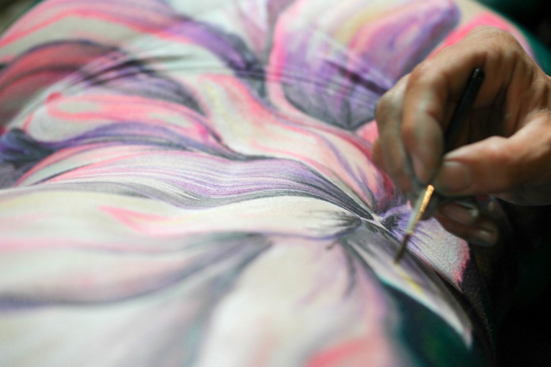 Bis es aber so weit war, bedurfte es eines ganzen Tages, um das Kunstwerk auf nackter Haut zu erstellen. Nachdem Dutzende Farbtöpfchen, Pinsel und Schwämmchen vorbereitet waren, wurden erste Umrisse auf die Haut gezeichnet, um die entstehenden Flächen dann künstlerisch zu füllen. Beobachtet wurde das Bodypainting von zahlreichen Besuchern des botanischen Gartens sowie von Medienvertretern des bayerischen Rundfunks und der Erlanger Nachrichten.