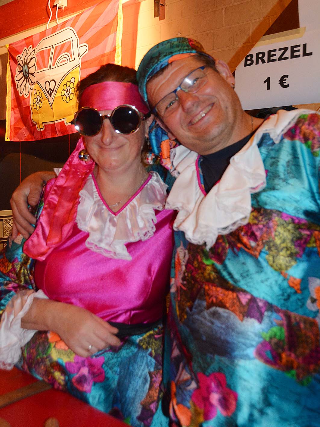 Für die 70er-Party hatten sie die Fahrzeughalle mit großem Aufwand in eine perfekte Disco verwandelt. Auch viele der Gäste hatten in ihrem Kleiderschrank – oder in der Fasendkiste – gekramt und kamen stilecht gekleidet im Retro-Style zur Partynacht.