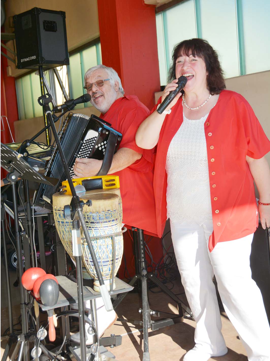 Für gute Laune sorgten das sonnige Herbstwetter und die beiden Musiker Gisela und Karl-Heinz Hug. Die Kinder konnten sich auf der Hopsburg des DRK austoben.