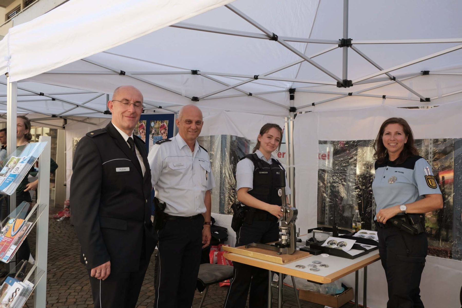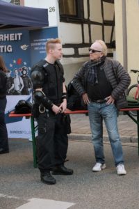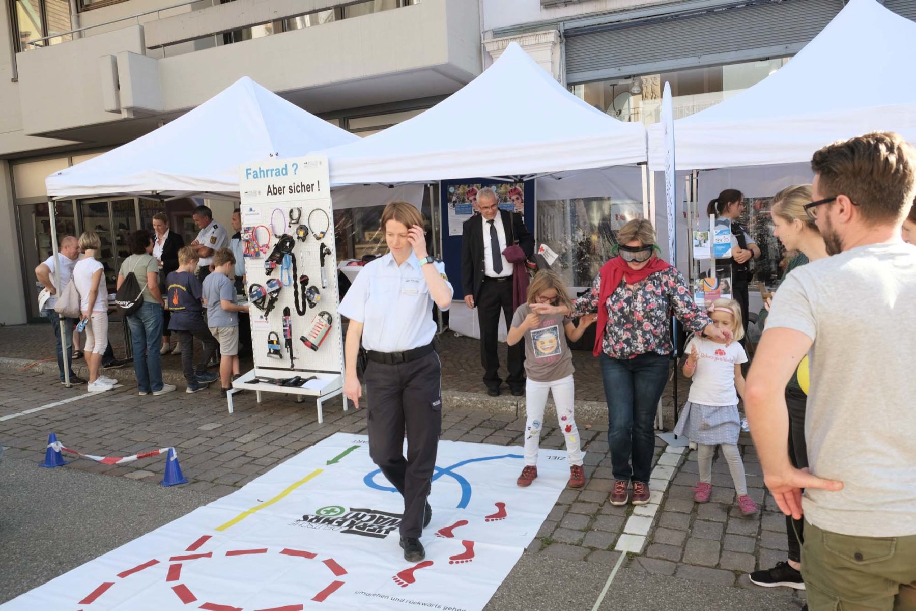 Die Kollegen vom Revier Haslach hatten die Alkoholbrille samt kleinem Parcours eingepackt und brachten so manchen Passanten zum Staunen, wie sehr sich schon kleine Mengen Alkohol auf Wahrnehmung und Koordination auswirken. Der Dauerbrenner »Fahrradsicherheit« fand ebenfalls seinen Platz auf dem Infostand. Zudem war der »Einstellungsberater« mit einem Info-Fahrzeug vor Ort und präsentierte die vielfältigen Möglichkeiten polizeilicher Tätigkeiten für Nachwuchskräfte.