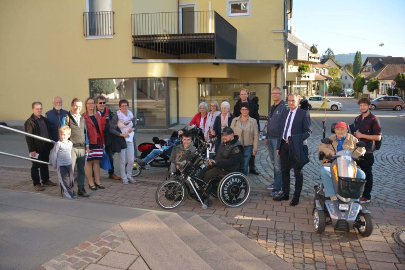 Nun startete die Gruppe beim Hirschgarten und brauchte keine weiten Wege zurücklegen, um den ersten kritischen Knotenpunkt zu erreichen. Der gepflasterte Platz in der Fabrikstraße vor der Zeller Sparkasse ist wegen der tiefen Fugen weder von Rollstuhlfahrern noch mit Kinderwagen gut befahrbar. Ein besonderes Ärgernis sind in diesem Bereich Falschparker, die direkt vor der Sparkasse parken, um dann bei laufendem Motor »schnell« ihre Bankgeschäfte zu erledigen. Fußgänger müssen auf die Straße ausweichen und andere Verkehrsteilnehmer werden behindert, so dass es regelmäßig zu gefährlichen Situationen kommt. Da die Fabrikstraße auch noch ein vielbefahrener Schulweg ist, besteht in diesem Bereich Handlungsbedarf. »Eine Unsitte«, kommentierten einige der Teilnehmer dieses Verhalten.
