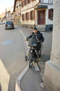 Engstellen gibt es entlang der Hauptstraße unterhalb der Bäckerei Lehmann’s-Beck, wo der Gehweg sich so verengt, dass Rollstuhlfahrer auf die Straße ausweichen müssen. Schlaglöcher und hohe Kanten behindern bei der Fahrt über den Steg in Richtung altes Spital und Seniorenheim St. Gallus.