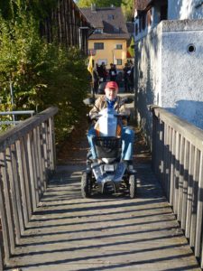 Ein Hindernislauf ist die Kapellenbrücke und Kapellenstraße zur Wallfahrtskirche. Hier sind bauliche Verbesserungen jedoch absehbar sobald die L94-Umleitung im kommenden Frühjahr wieder aufgehoben werden kann. Nur ein kurzes Stück später stieß die Gruppe in der Klosterstraße im wahrsten Sinne auf ein Andreas-Kreuz beim Bahnübergang, das weit in den Fußgängerweg hineinreicht und so zum Hindernis wird. Hier soll kurzfristig für Abhilfe geschaffen werden indem das Andreas-Kreuz versetzt wird.