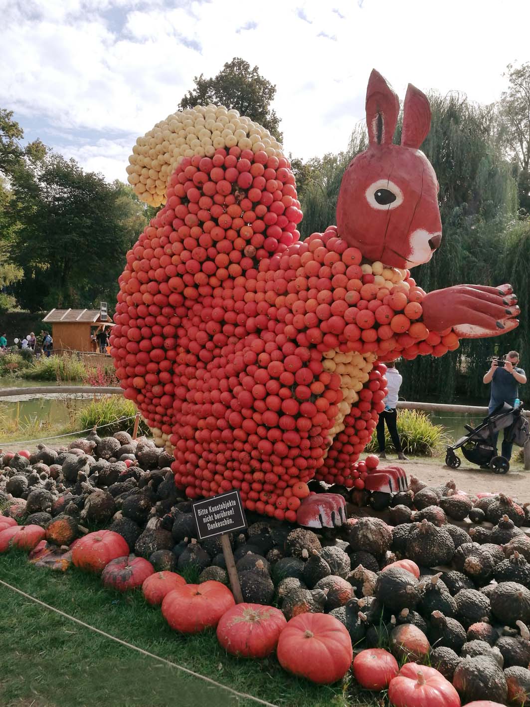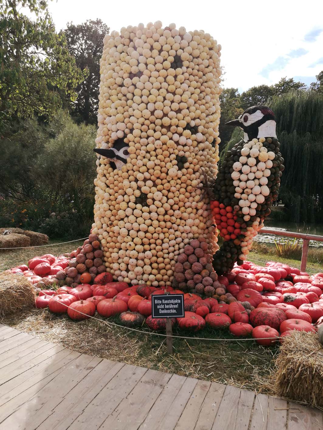Toll, was aus den Kürbissen gemacht wurde: Wölfe, Hasen, Wildschweine Eichhörnchen und eine riesige Eule sind nur einige der Tiere die mit Kürbissen dargestellt wurden. Kunstvoll als Märchenfiguren geschnitzte Kürbisse belebten die von einer vorherigen Ausstellung erhaltenen Sandskulpturen.