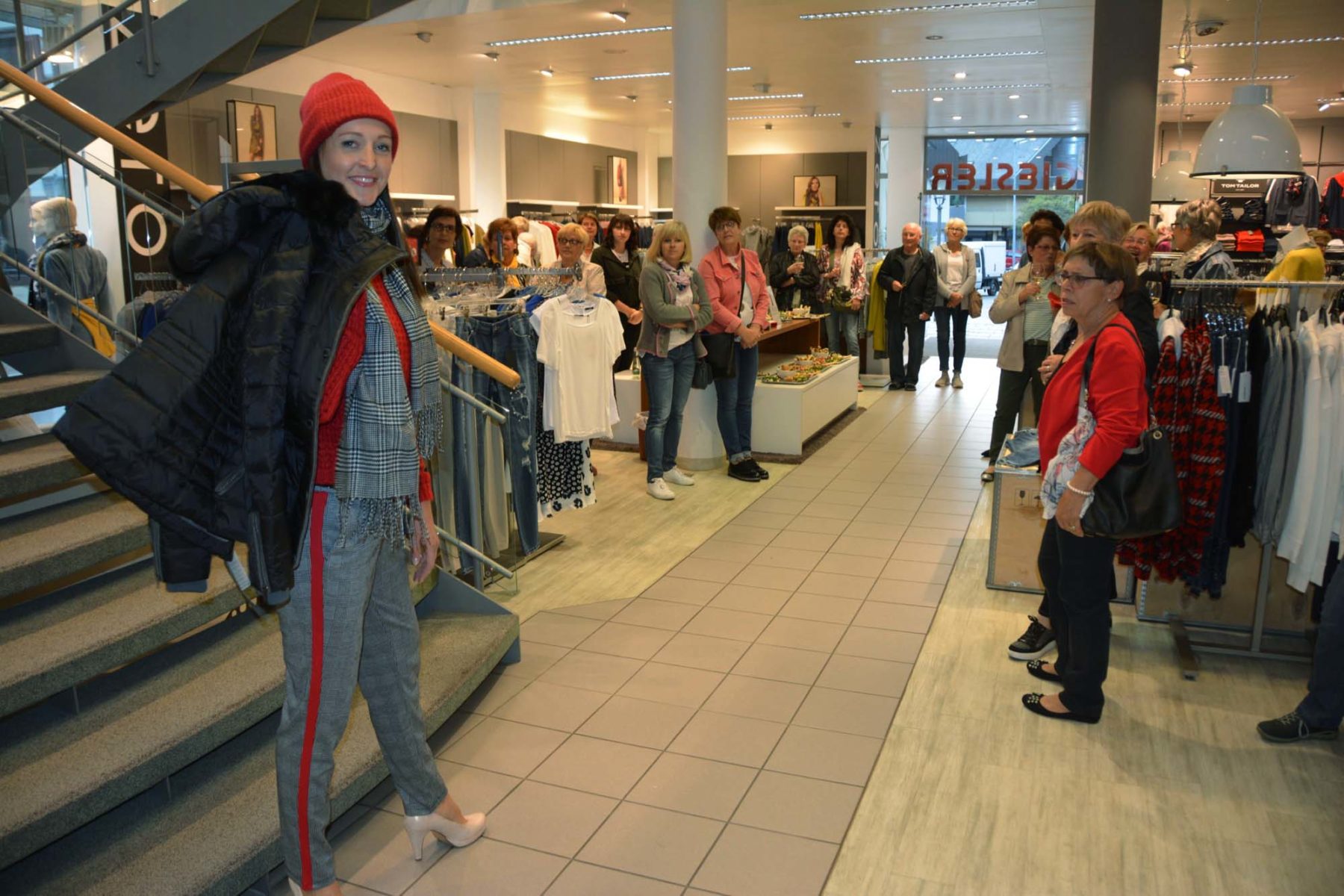 Die zahlreichen Kundinnen und auch einige Kunden konnten bei mehreren Durchgängen die frischen neuen Herbstfarben, leichte fließende Wollstoffe und entspannte Leisure-Wear in bequemen Schnitten erleben. Ein modisches Muss sind stylische Hoodies. Interessant geschnittene Jacken und Mäntel kleiden die Damen von heute. Sehr breit ist die Farbpalette der kommenden Modesaison, die von dezenten Curry-Tönen bis hin zu klassischem Blau oder Rot/Schwarz reicht.