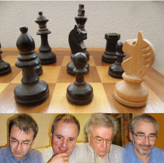 Adolf Woisetschläger (6) nahm relativ schnell ein Remisangebot an – sonst war noch nix passiert. Vielleicht etwas früh, sein Gegner war nominell schlechter, die Stellung noch offen. Kurt Jäger (1) stand lange unter Druck. Die Eröffnung verlief anders als geplant, bereits in frühem Stadium musste er viele und schwerwiegende Entscheidungen treffen. Letztlich konnte eine Abtauschorgie die Probleme beider Seiten vom Brett nehmen. Die Remiseinigung gab für Zell mehr Sicherheit. Jürgen Gißler (2) stand zunächst etwas aktiver. Eine Abwicklung brachte ihn leicht in die Defensive. Dennoch konnte keiner einen Gewinnweg erkennen. Remis. Stefan Gießler (3) hatte die deutlich bessere, weil etwas aktivere Stellung. Es boten sich Optionen für die weitere Aktivierung seiner Figuren und das Ausüben von Druck auf die gegnerischen Schwachpunkte. Leider hatte er zu viel Respekt vor einem – doch nicht so DWZ-starken – Gegner. Er nahm das Remisangebot an. Wilhelm Eble (7) konnte ohne große Eigeninitiative einen Punkt gewinnen. Nach gutem Aufbau deaktivierte sein Gegner seine Stellung und machte weitere Rückzüge. Nach einem Bauerneinsteller kam noch ein unnützes Figurenopfer – danach die Aufgabe. Dieter Marzluf (8) hatte zu diesem Zeitpunkt seine gute Stellung (Gewinnweg war noch nicht offen erkennbar) mit einigen nicht so zielstrebigen Zügen abgegeben und sich in ein schlechtes Endspiel begeben. Leider passierten weitere Fehler und Ungenauigkeiten. Das Stellungsglück war ebenfalls gegen ihn. Er wollte sich in ein Endspiel (Randbauer und falscher Läufer) retten. Leider konnte er den vorletzten Bauern nicht schlagen. Nun war es wieder knapp.