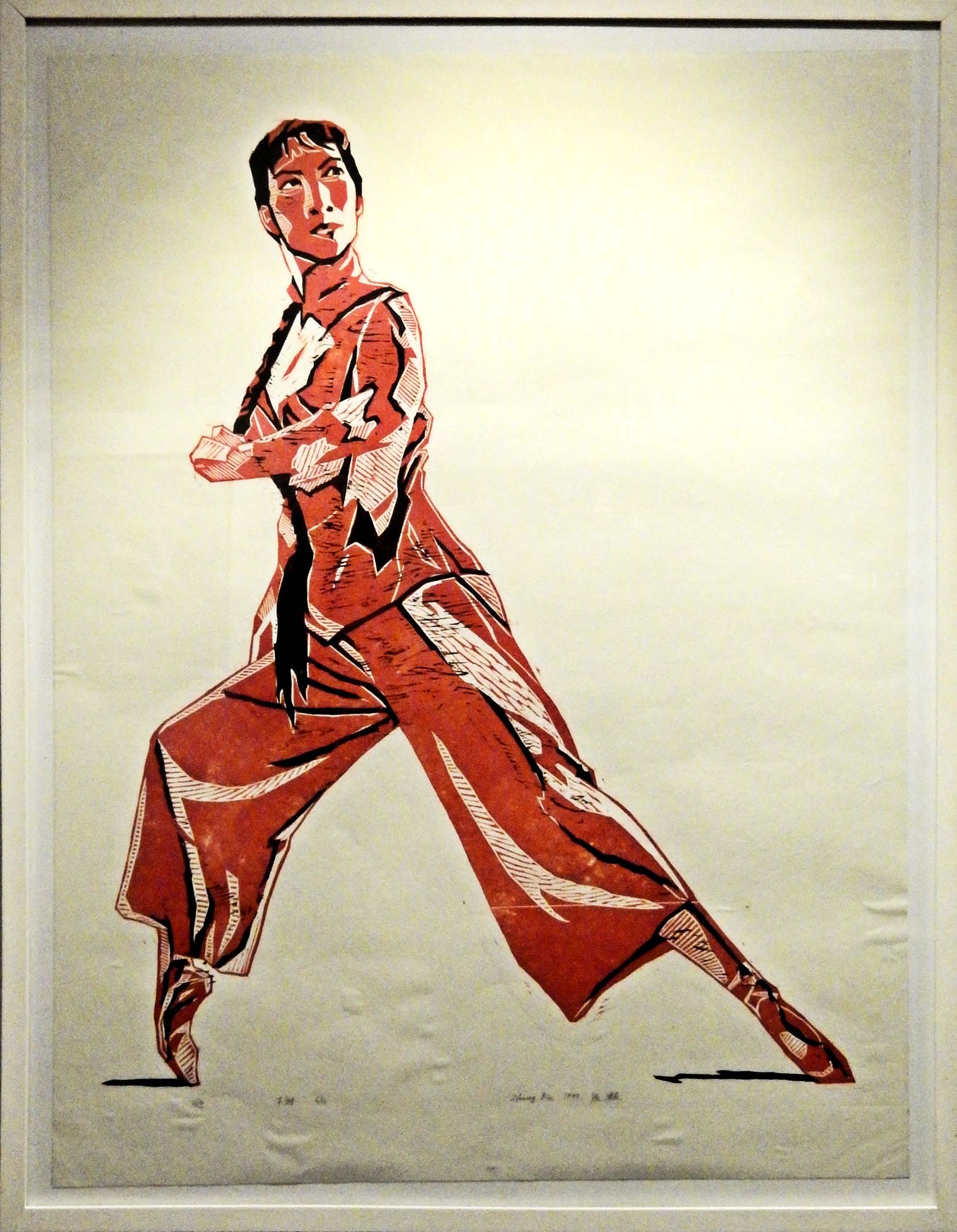 Farbiger Holzschnitt von Zhang Bin: Ballett-Tänzerin, 1995.