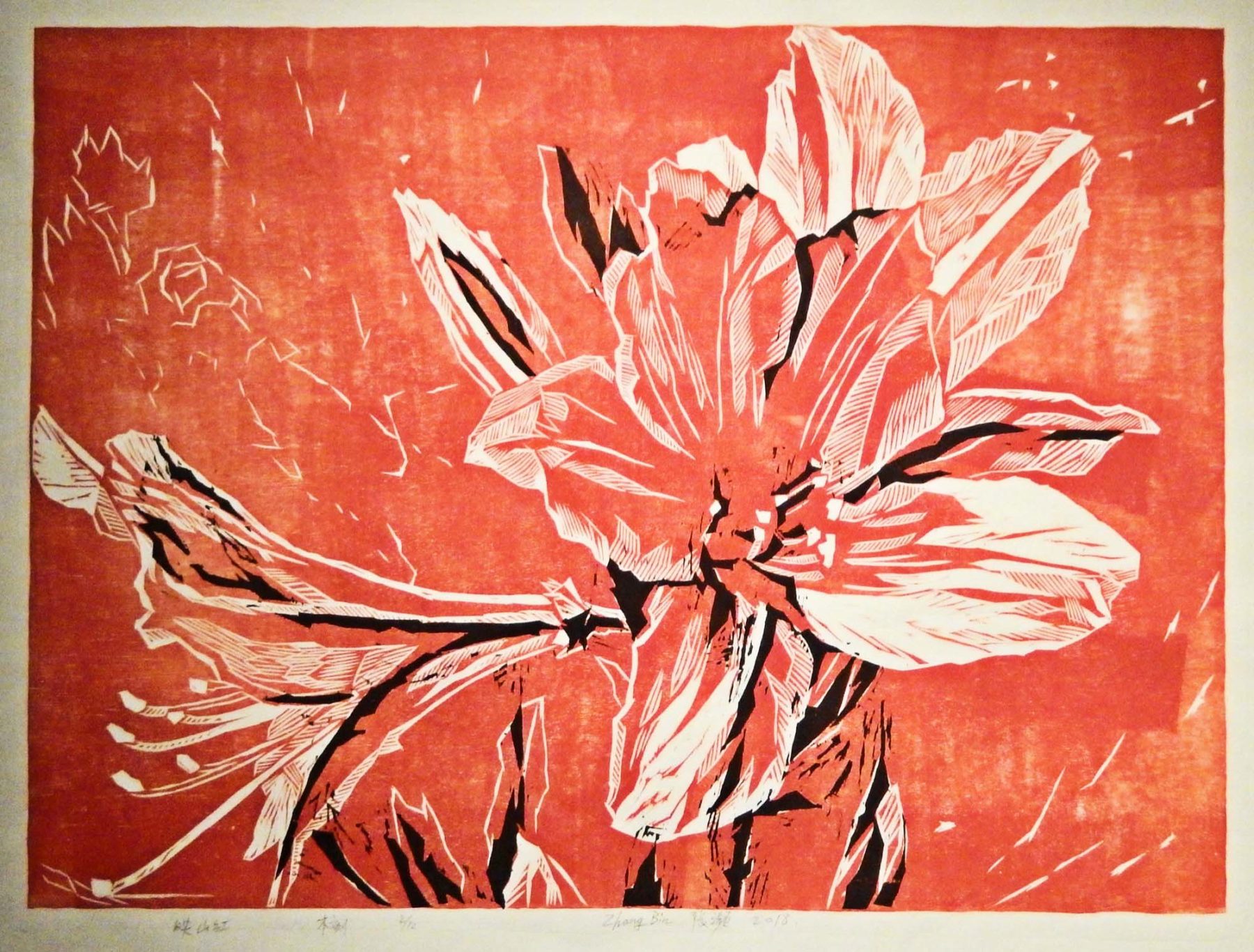 Über romantische Blütenträume zur chinesischen Kunst: Zhang Bin, farbiger Holzschnitt von 2018.