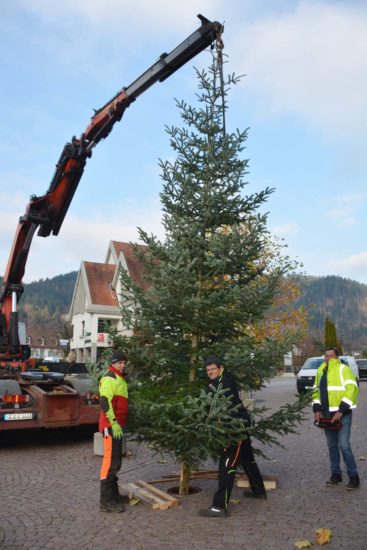Bereits in dieser Woche wurden die großen Bäume aufgestellt, die ab dem kommenden Freitag die Stadt Zell wieder zum Tannenbaumstädtle machen. Unter anderem wurden der Stadteingang und der Kanzleiplatz geschmückt. Die Tannenbäume wurden von den Mitarbeitern des Betriebshofs gefällt und aufgestellt und dabei vom Waldservice Ortenau unterstützt. Drei Bäume stammen von privaten Spendern. Ein großer Tannenbaum hat Ortsvorsteher Lorenz Breig aus Oberentersbach zur Verfügung gestellt. Zwei Bäume stammen aus dem Vorgarten der Familie Günter Brüderle in der Eichendorfstraße.