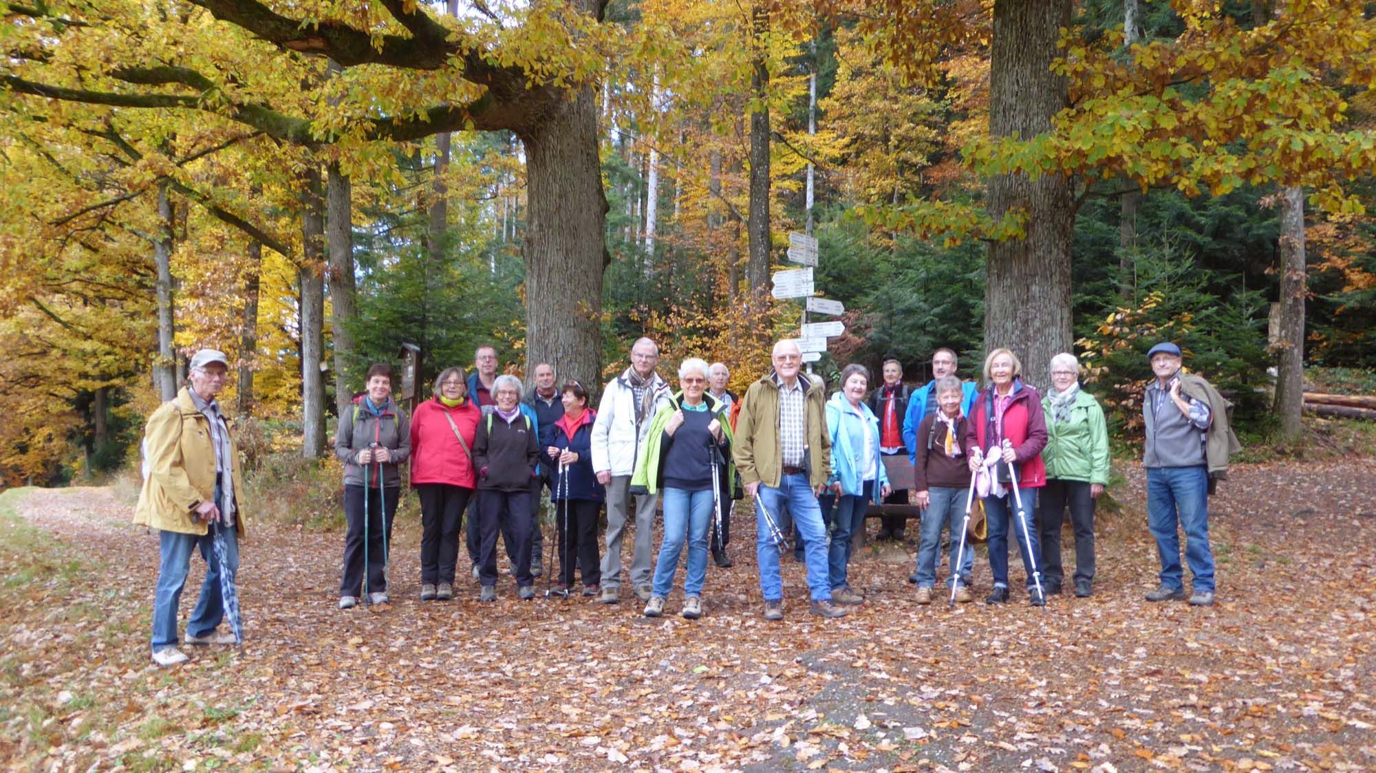 Bei schönstem Herbstwetter begann die Tour am Bahnhof. Über die Kirchstraße, Musikplatz und Radiumquelle wanderte man durch buntes Laub Richtung Mattacker. Am Waldrand entlang ging es mit kurzen Pausen und Einlagen der Wanderführerin nach Lindach. Hier an der Wanderbank wartete Martinigebäck und etwas zum Aufwärmen auf die Wanderer. Nach dieser netten Überraschung der Wanderführerin führte der Weg weiter zur Einkehr ins Mühlenstüble. Lustig ging es zu, es wurde zur Mundharmonika gesungen und auch ausgiebig gevespert. Nach der Pause machten sich die Wanderer gut gelaunt und frisch gestärkt auf den Rückweg nach Zell.