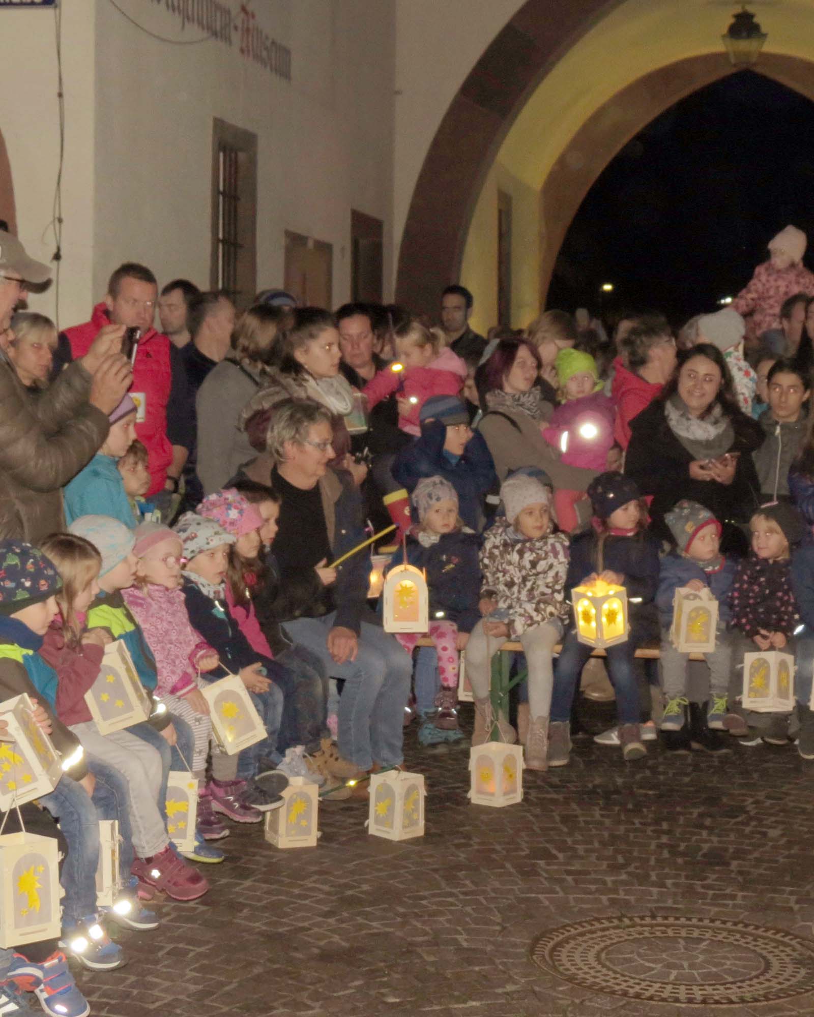 Am Montagabend durften die Kinder des Kindergartens »Sternschnuppe« mit ihren Laternen zum Kanzleiplatz laufen, um dort das traditionelle Martinsspiel zu sehen.
