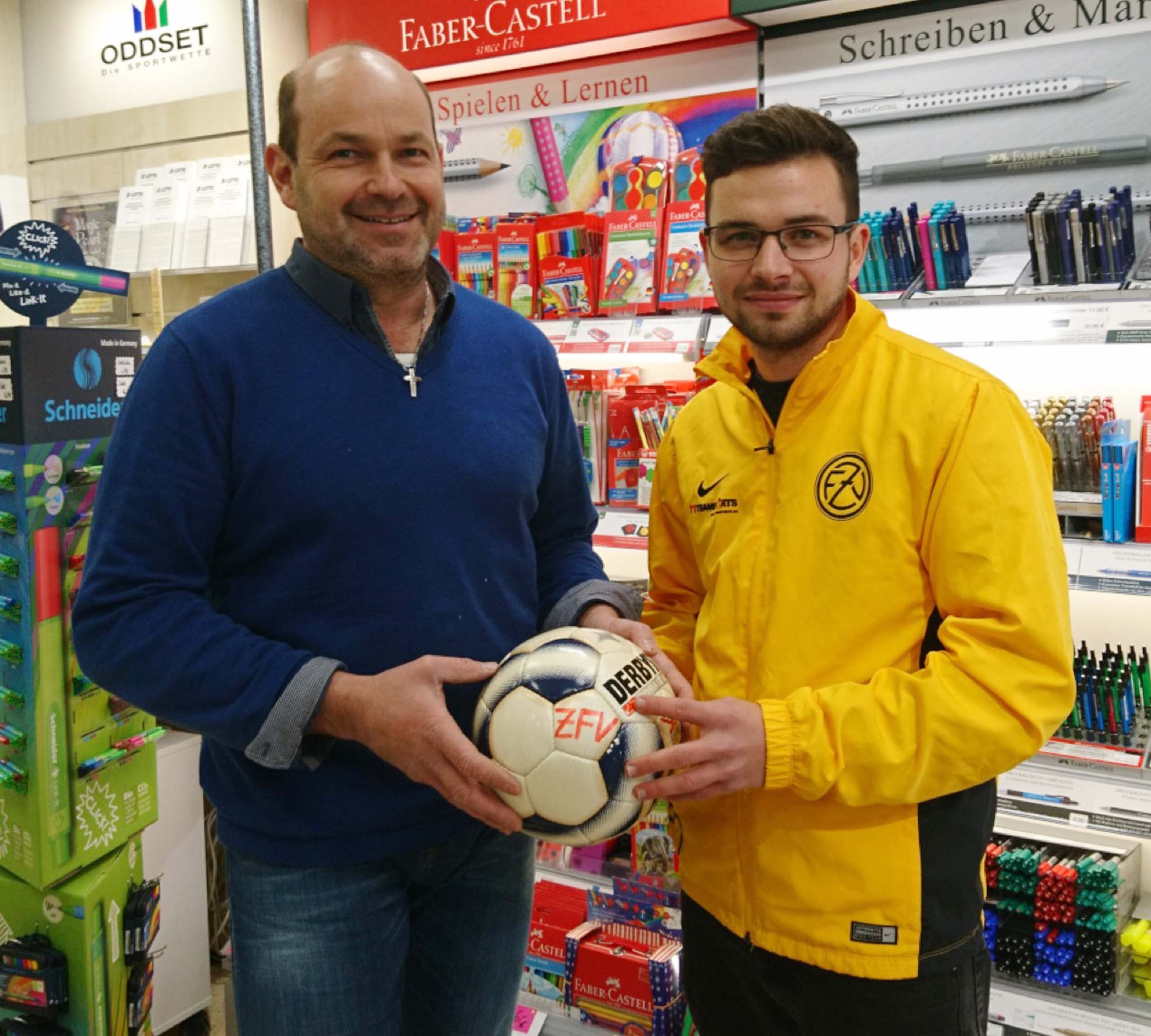 Übergeben wurde der Spielball von Inhaber Harald Hoferer an den ZFV-Spieler Alexander Becker. Harald Hoferer wünscht dem ZFV in seinem letzten Heimspiel »Viel Erfolg«. Nach dem Sieg vergangenen Sonntag wäre ein Heimsieg zum Abschluss des Fußballjahres 2018 für den ZFV doch »eine runde Sache«.
