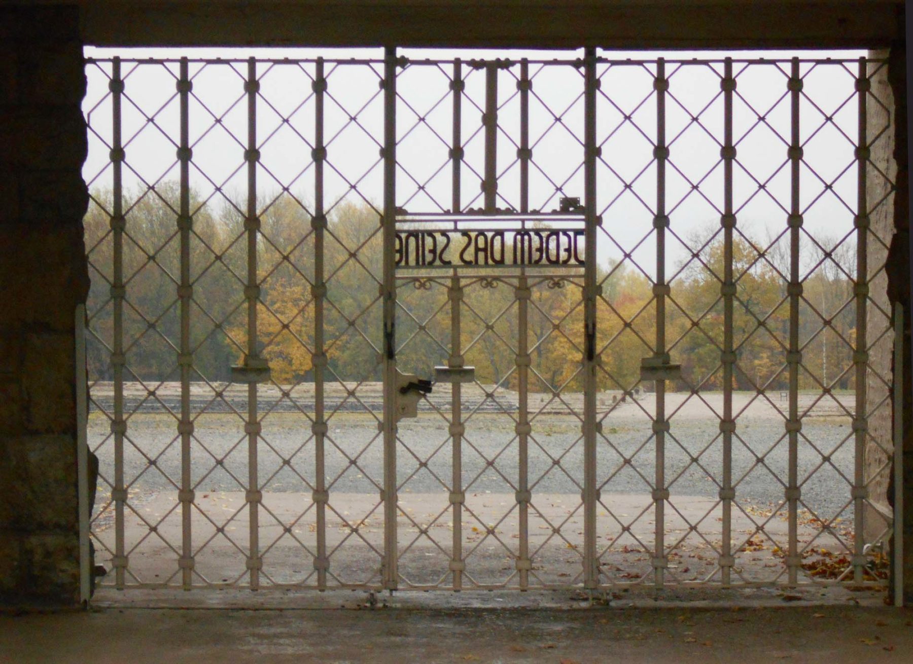 Dieser Spruch wurde grausam umgemünzt. Im Tor ist die schmiedeeiserne Inschrift zu lesen. Als ob das nicht genug wäre, ist die Schrift so angebracht, dass die Häftlinge beim Verlassen des Lagers angesichts des Überflusses die Worte lesen mussten. Das war grausam und höhnisch gemeint.