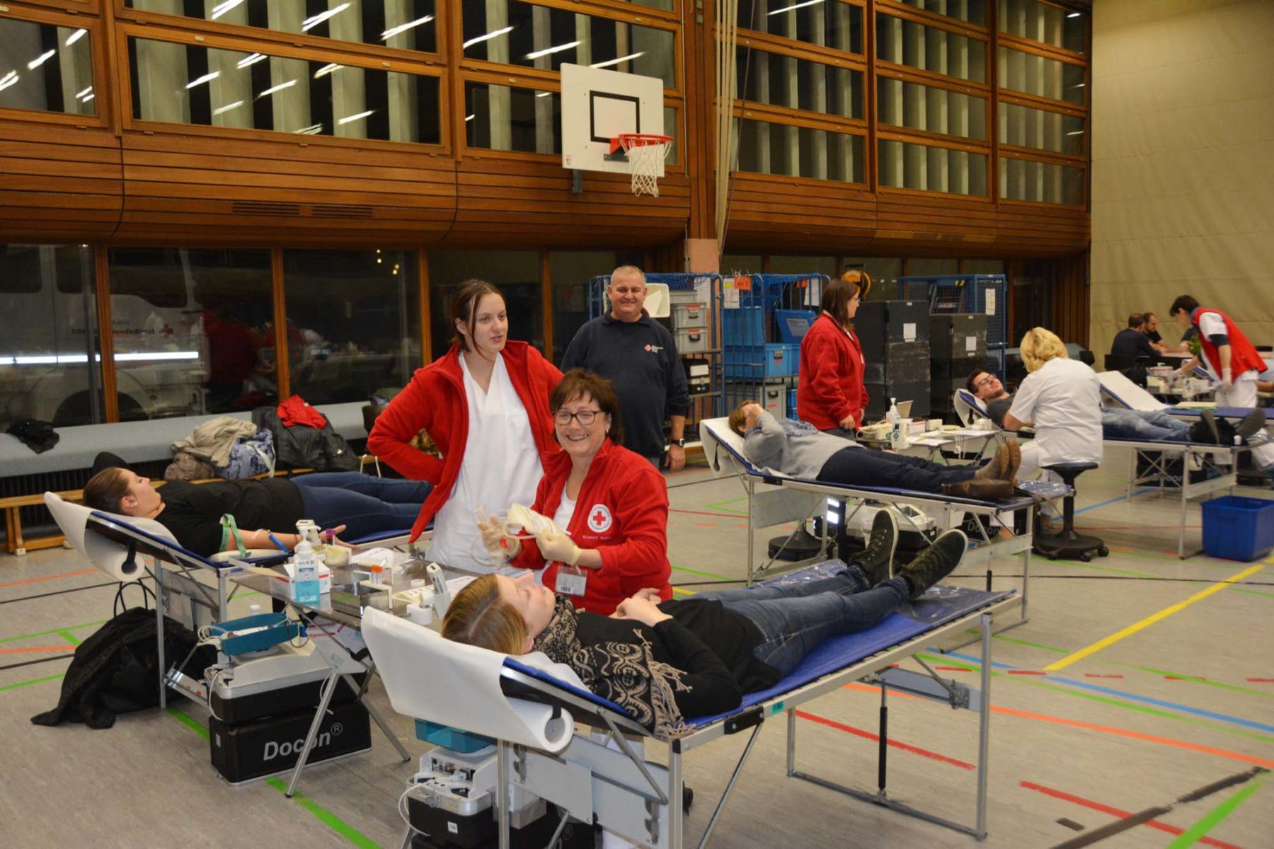 Foto: Hanspeter Schwendemann165 Spendenwillige sind dem Aufruf des DRK zur Blutspende gefolgt. Zwei von ihnen waren Erstspender. 156 Blutkonserven konnte das Spendeteam der Blutspendezentrale mitnehmen. Außerdem wurde von einer Spenderin die Typisierung für eine Stammzellenspende (Knochenmark) mit abgenommen. Dies kann bei jedem Termin bei vier bis fünf Spendern kostenlos durchgeführt werden. Sie werden dann in die Spenderdatei mit aufgenommen.
