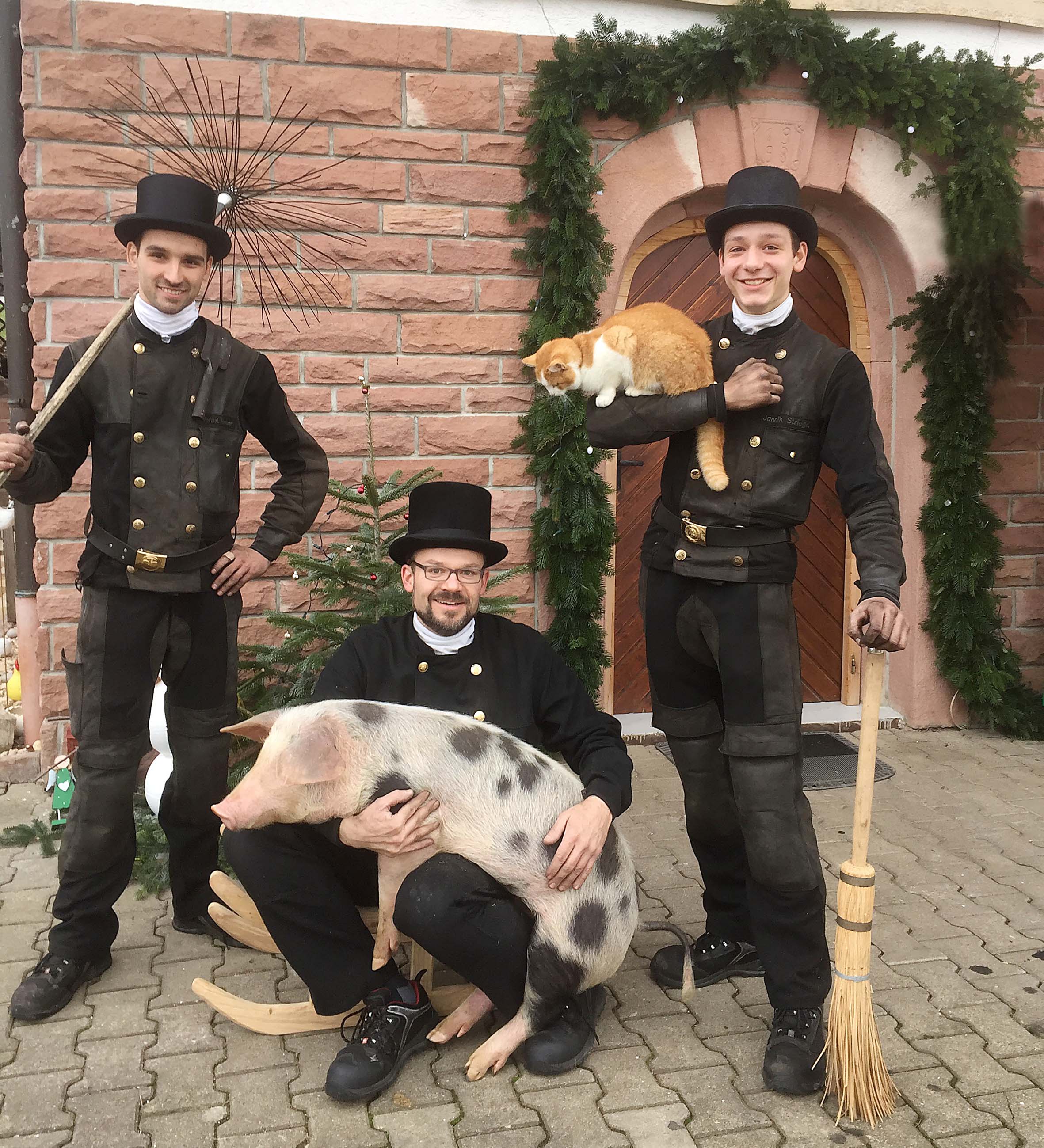 Rafael Hansmann, Andreas Wurz mit Glücksschwein Pünktchen sowie