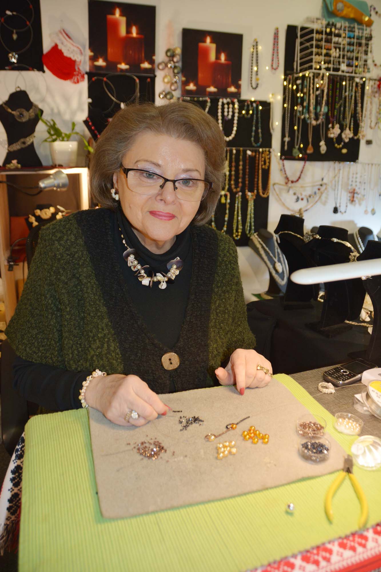 Es leuchtet und funkelt im Schmuckladen von Elke Kövari: Colliers und Halsbänder, Armreife und Ringe, Ohrclips und Broschen ziehen die Blicke auf sich. Sie sind gefertigt aus Gold- und Silberdraht, verziert mit edlen Natur- und Kunststeinen, glänzenden Muscheln und echten Perlen.