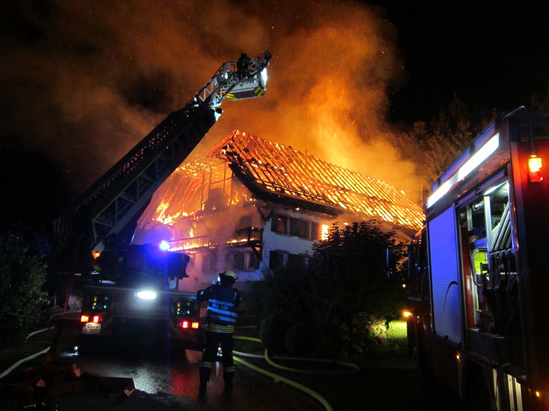 Großbrand zerstört den Rebhof. Das Gebäude brennt bis auf die Grundmauern nieder. Schaden von rund einer Million Euro. Biberach